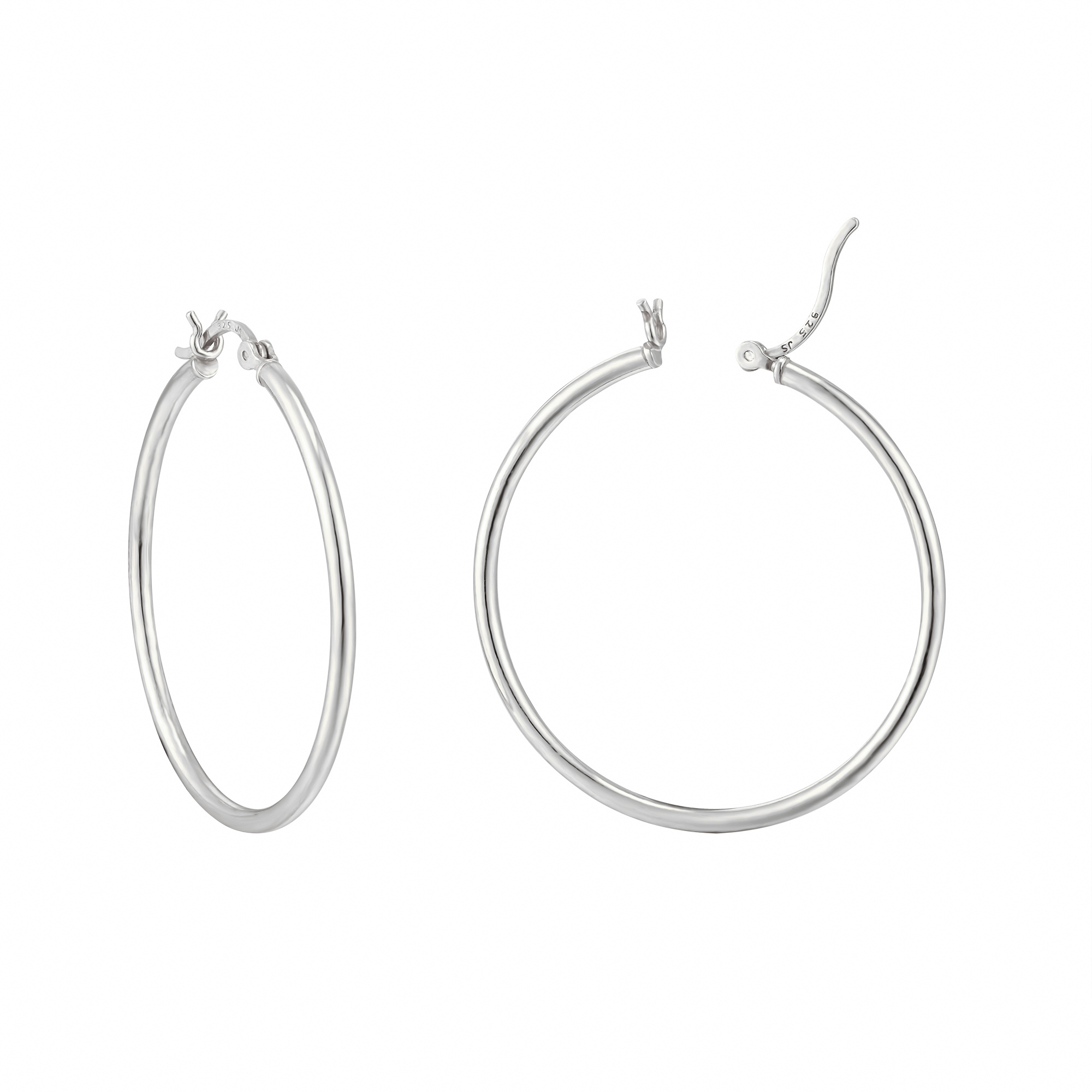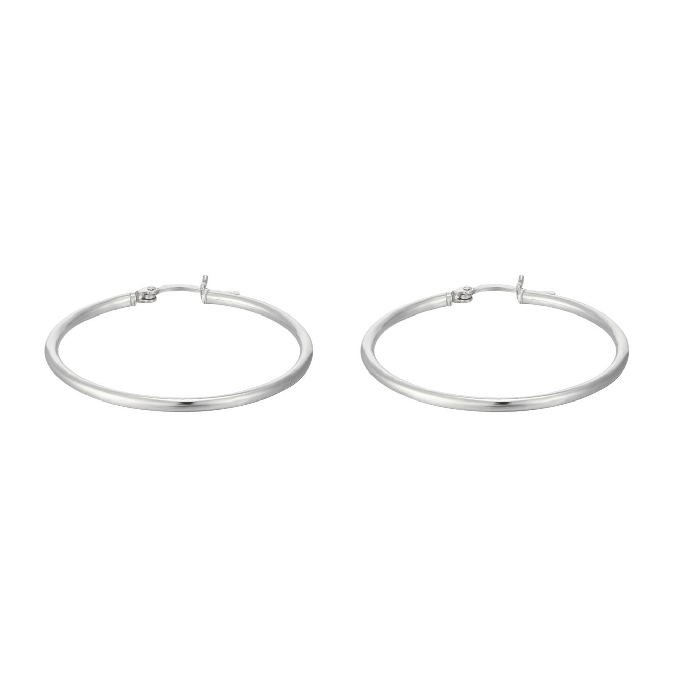 These sterling silver creole hoop earrings are a classic jewellery staple with a bright, polished finish. Their smooth, rounded shape gives them a clean and timeless look, while the larger 40mm size adds more presence than a smaller everyday hoop. As a result, they feel simple, elegant, and easy to wear, but still noticeable enough to make an impact.
