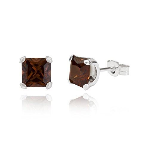 Sterling Silver 6mm Brown Cubic Zirconia square stud earrings