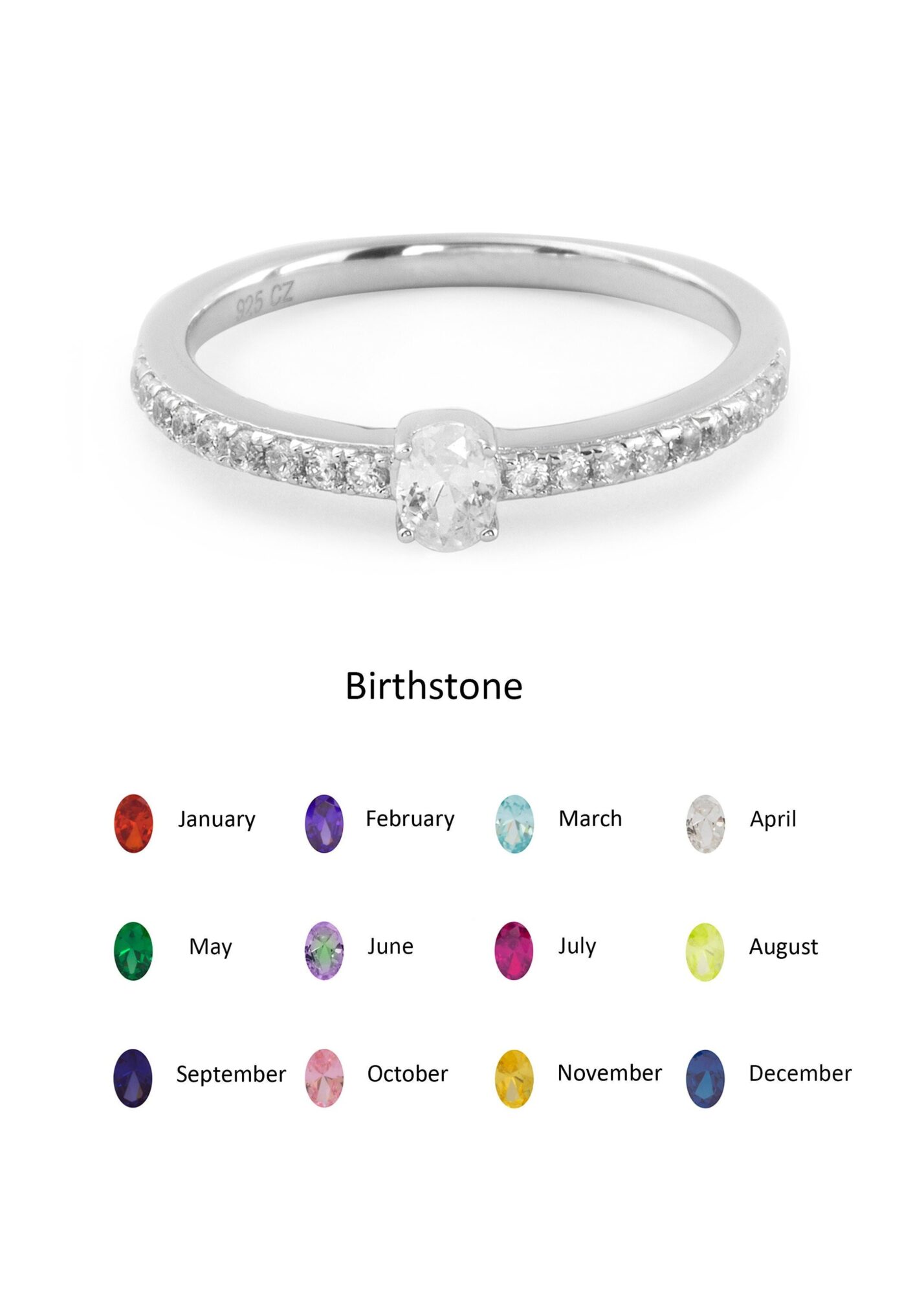 • Sterling silver 925 cubic zirconia crystal cz birthstone stacking ring