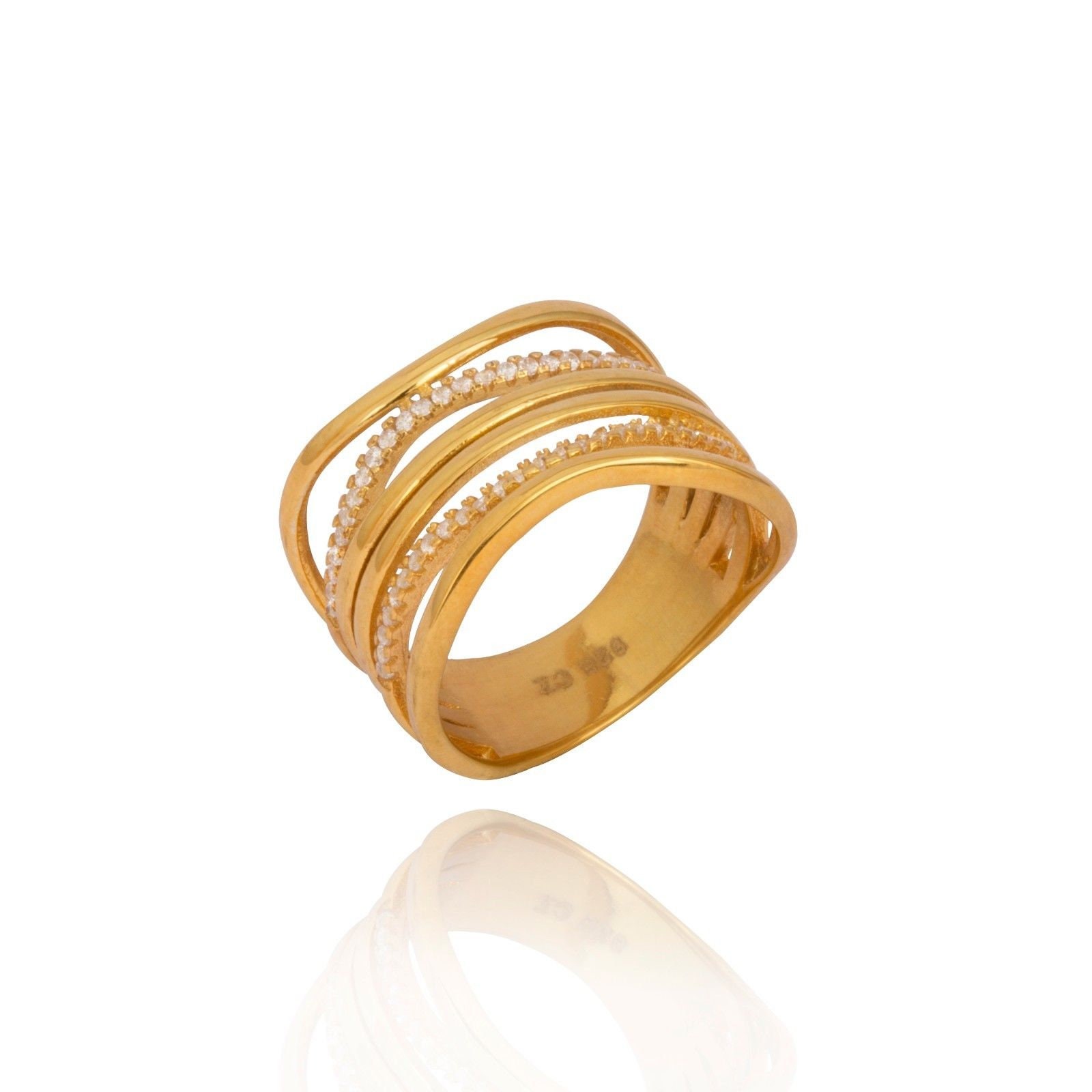 • Sterling Silver 925 gold plate cz eternity band chunky boho ladies stacking ring