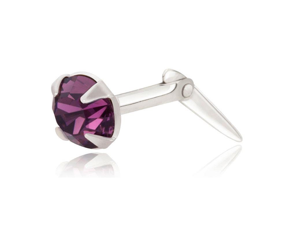This Andralok purple crystal nose stud uses the Andralok fitting as part of its construction. The fitting provides a secure hold while remaining comfortable for long-term wear.