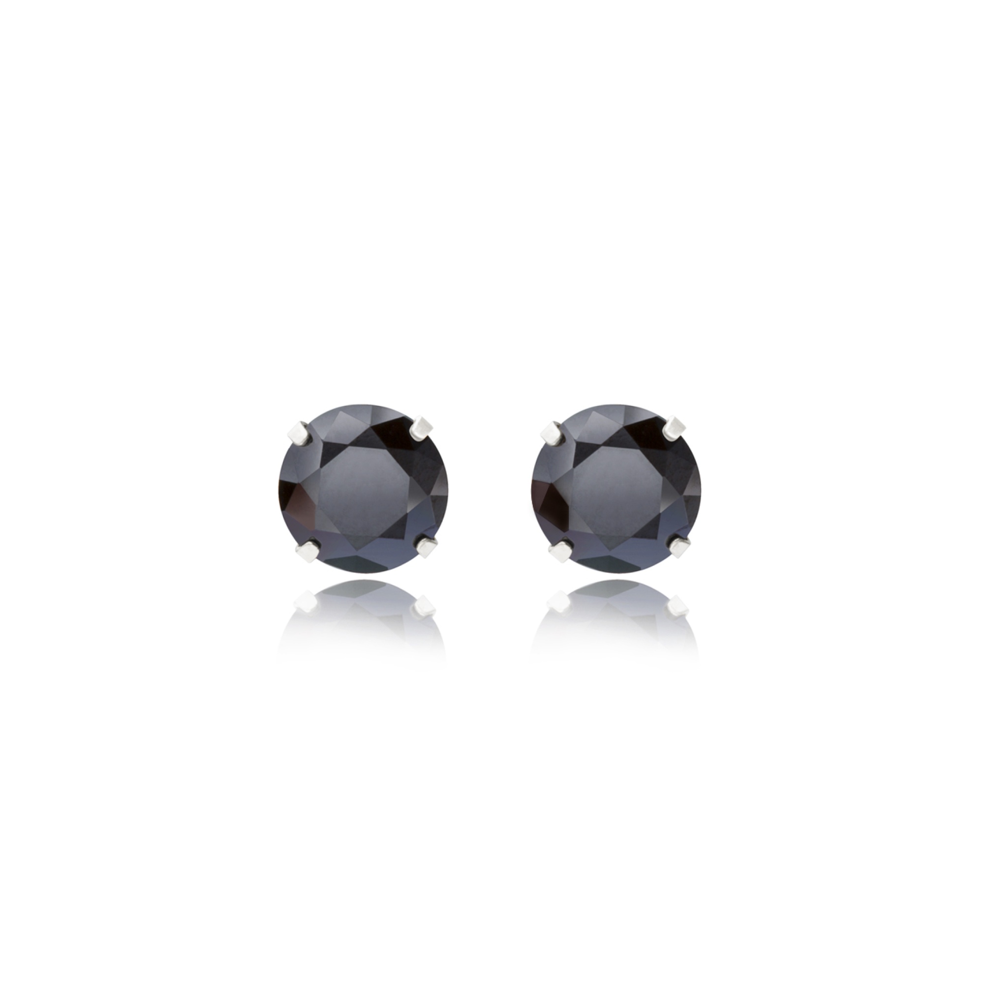 • Round black cubic zirconia studs with bold contrast and a polished finish