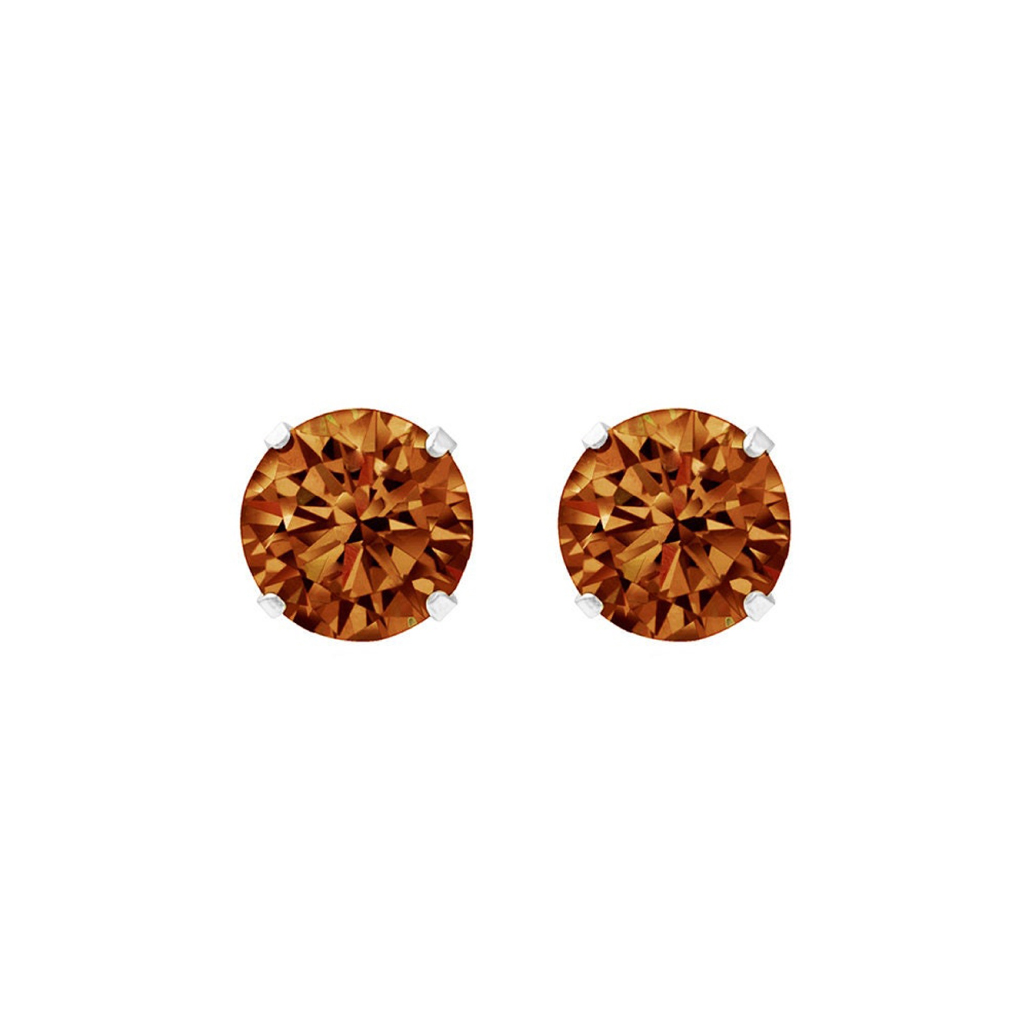 • Round brown cubic zirconia studs with warm depth and a polished finish