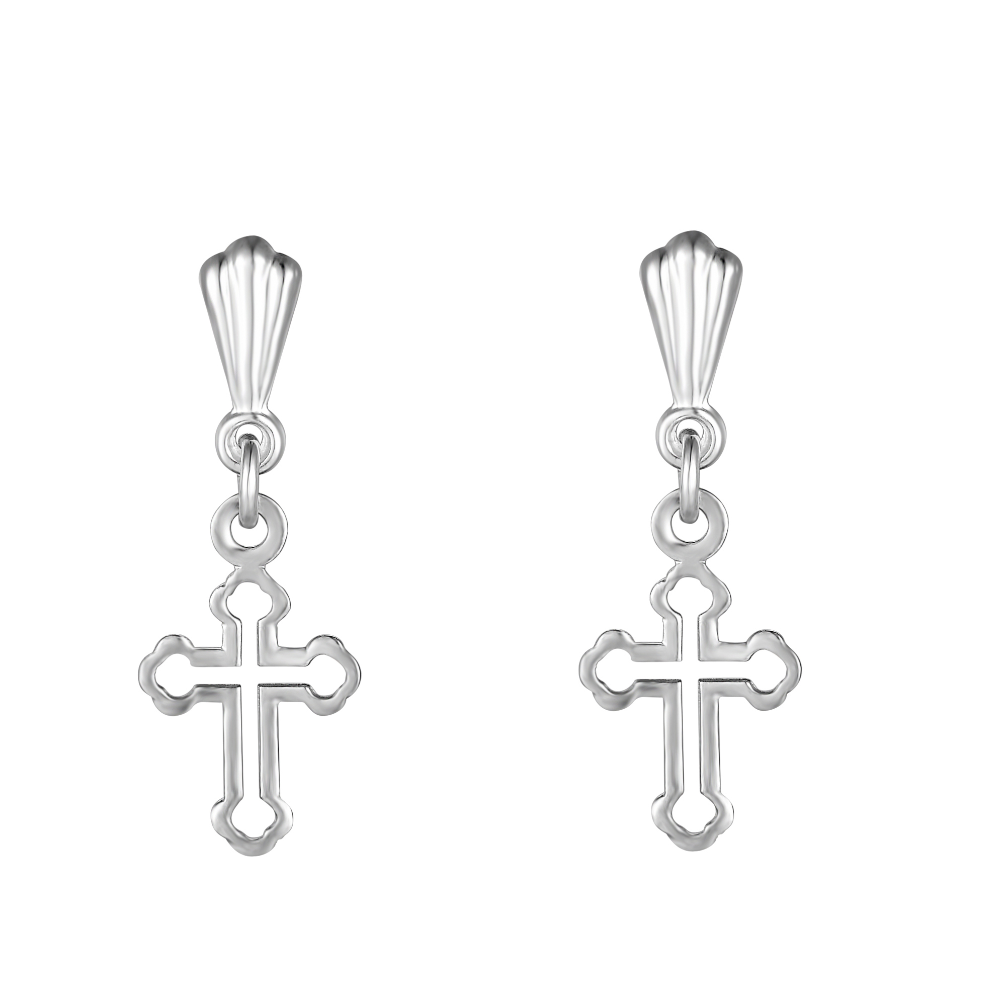 Each earring uses a sculpted three-dimensional cross rather than a flat cut-out. Open internal detailing keeps the shape light while preserving definition. At 5.5mm (W) x 17mm (H), the earrings sit neatly on the ear without excess length.