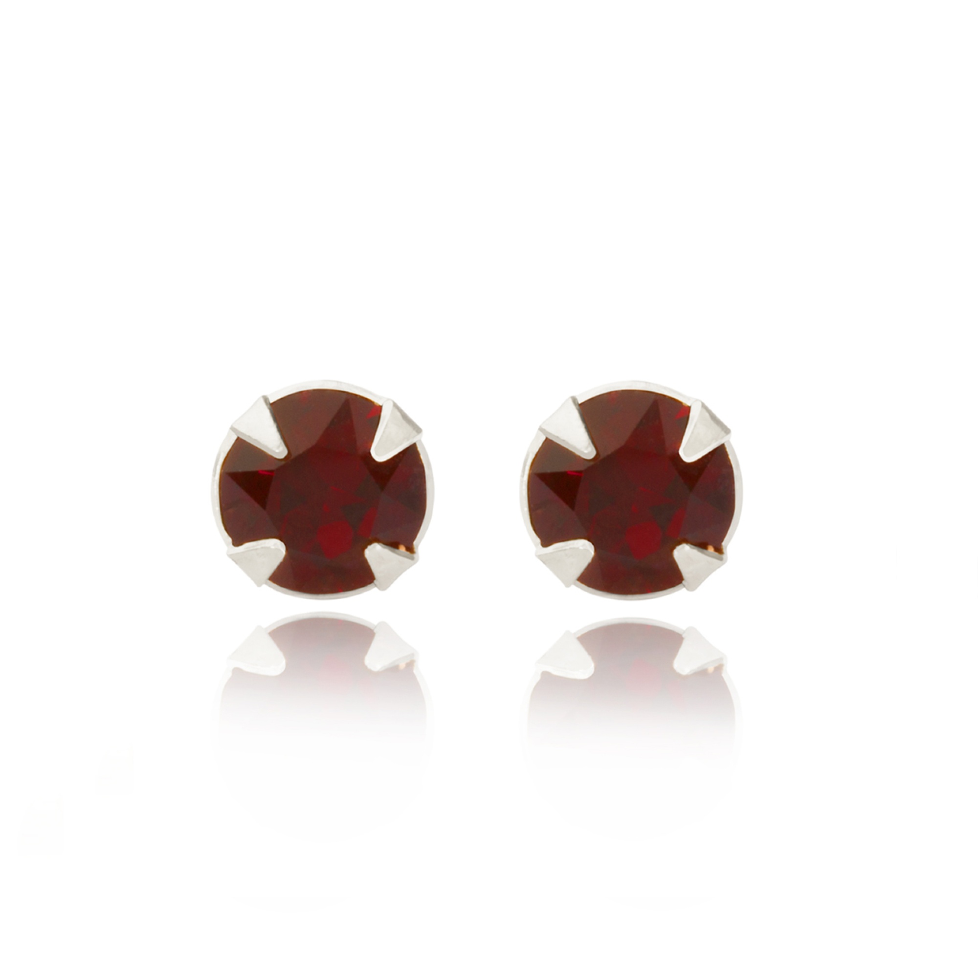 These silver dark red crystal studs bring a richer, deeper colour into a clean everyday design. The tone feels warm and defined, so it adds more presence than a lighter red stone while still keeping the look neat and wearable. Set in polished Sterling Silver, the finish stays crisp and controlled, which helps the dark red crystal stand out without feeling heavy.