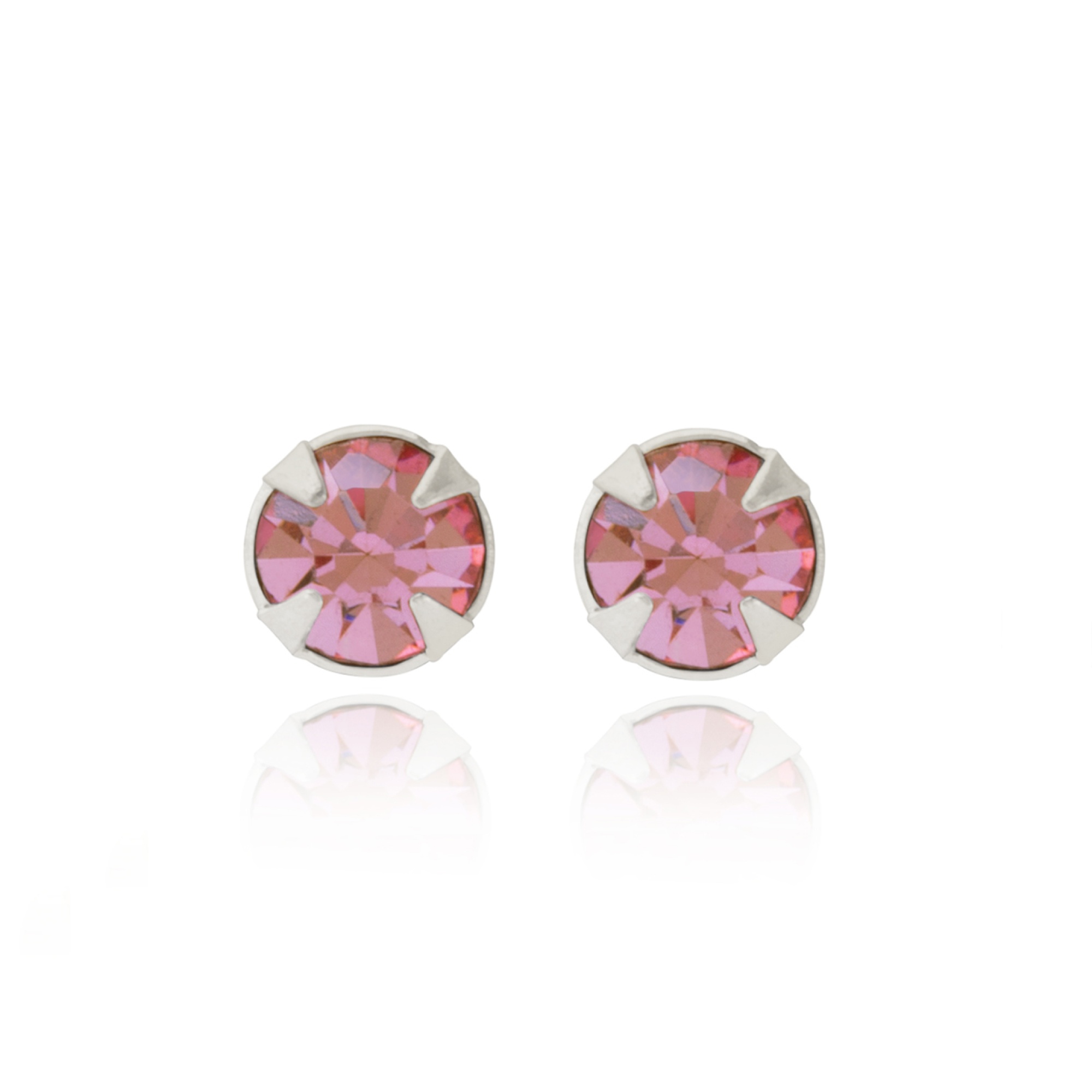 These silver light pink crystal studs bring together soft colour, clean sparkle, and an easy everyday finish. The design stays simple, which is exactly what makes it so useful. A faceted Light Pink crystal sits neatly in a polished Sterling Silver setting, so the overall look feels bright and refined from the start. The result is a stud earring that adds colour without feeling too strong, and sparkle without feeling overdone.