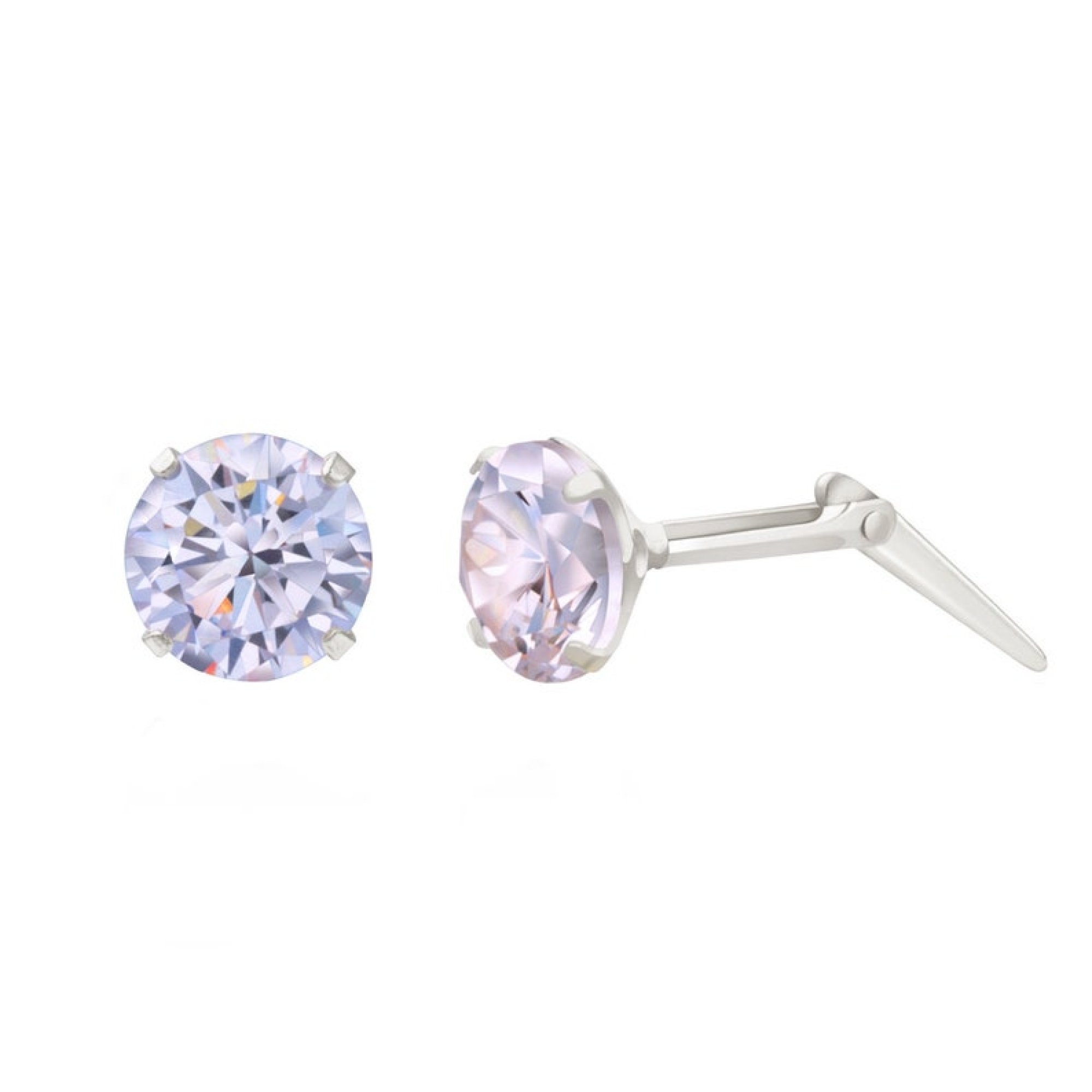 If you want silver light purple cz studs that bring colour without overpowering your look, this round design keeps everything clean and refined. The light purple cubic zirconia shows a soft lilac tone that feels fresh rather than bold. As a result, these sterling silver light purple cz studs offer subtle sparkle with a polished finish.