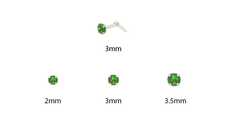 Next, this parent listing lets you choose the exact presence you want without changing the style. If you prefer subtle shine, 2mm delivers a precise sparkle that feels elegant and understated. Then, 3mm gives a classic everyday pop that still looks effortless with other jewellery. Finally, 3.5mm adds bolder impact while keeping the same clean round silhouette, so you simply choose how noticeable the emerald looks.