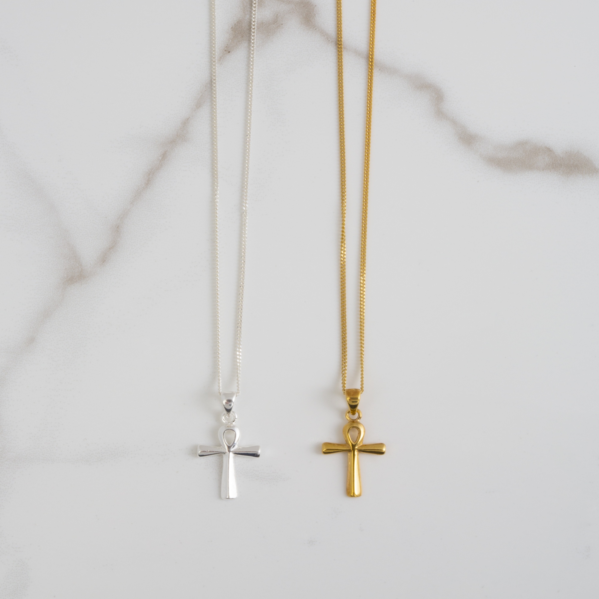 Sterling Silver Ankh cross pendant. Available in sterling silver (.925), 18ct yellow gold plate over sterling silver (.925) or 18ct rose gold plate over sterling silver (.925).