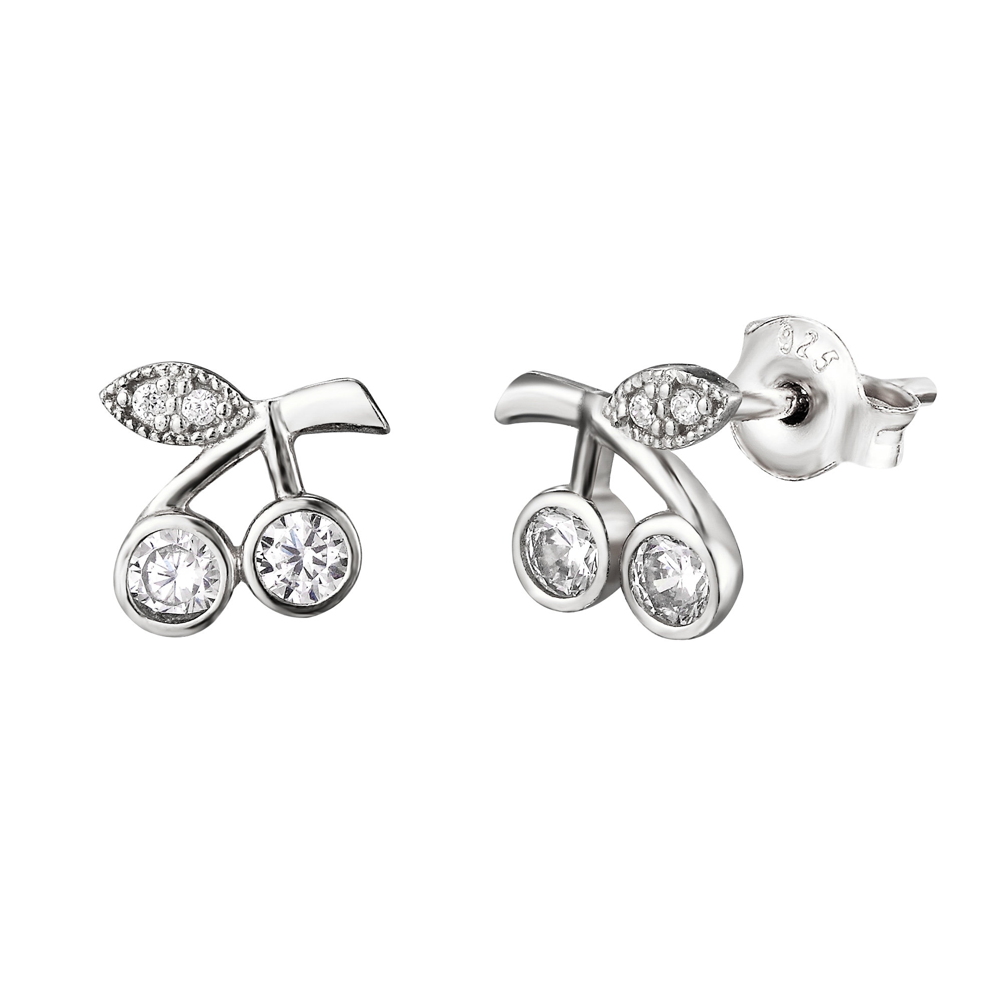 • Sterling Silver Cherry CZ Stud Earrings