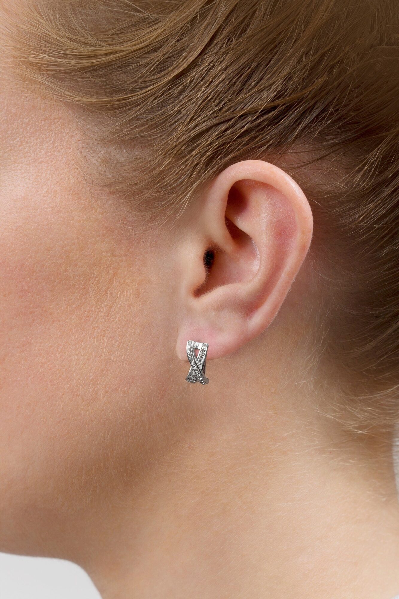 Embrace sophisticated glamour with these sterling silver crystal huggie kiss earrings. Embellished with dazzling white crystals, these crossover ‘kiss’ earrings will add a dash of subtle sparkle to any outfit. Perfect for special occasions, these earrings come in a stylish gift box, ready to present to a friend or loved one.Measures 7mm (w) x 16mm (h).Please note that if you are ordering more than one item that they will arrive in only one gift box. If you need more than one gift box then please message us and let us know!