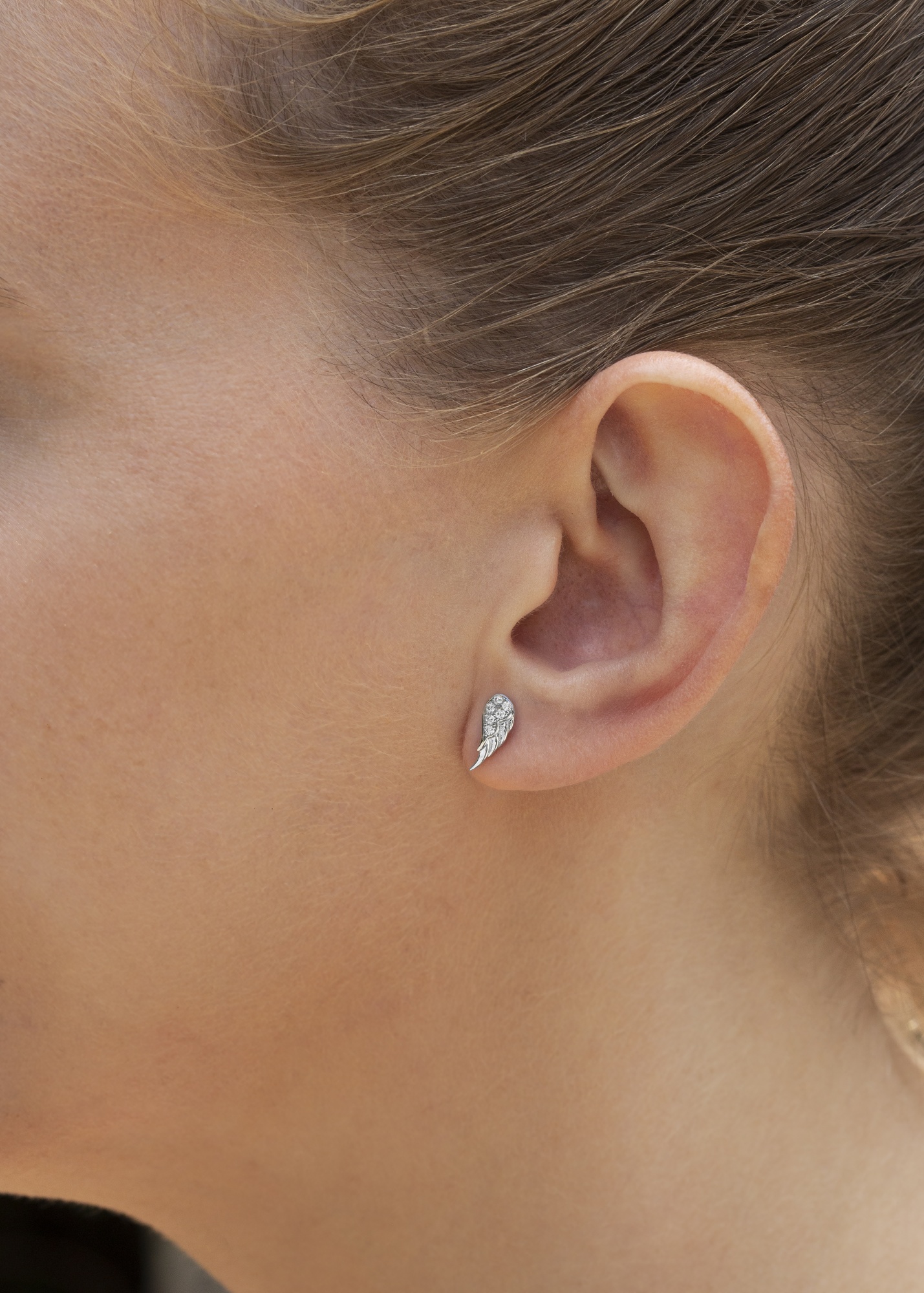 These earrings are handmade in the UK using high quality 925 sterling silver. With delicate cubic zirconia’s set within the angle wing, these studs are the perfect addition to any jewellery lovers’ collection. Wear during the day or as an eye-catching addition to an evening outfit. Arriving in a stylish presentation box, they are ideal for gifting.