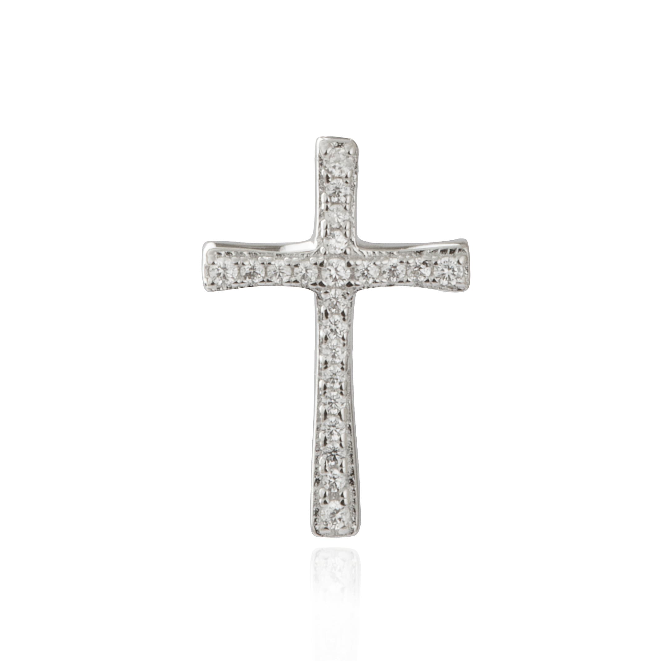Add a glamorous finish to any outfit with this pretty cross pendant. Made from sterling silver and then rhodium plated, the cross is embellished with sparkling cz stones to give a luxurious finish to any look, day or night. The pendant slips through a chain so it suspends delicately without a visible bail. The pendant will arrive in a gift box, ready for someone special. This pendant is sold without a chain, as seen – making it personal to you and allows you to wear it whatever way you would like.Measures 11mm (w) x 17mm (h).Please note that if you are ordering more than one item that they will arrive in only one gift box. If you need more than one gift box then please message us and let us know!