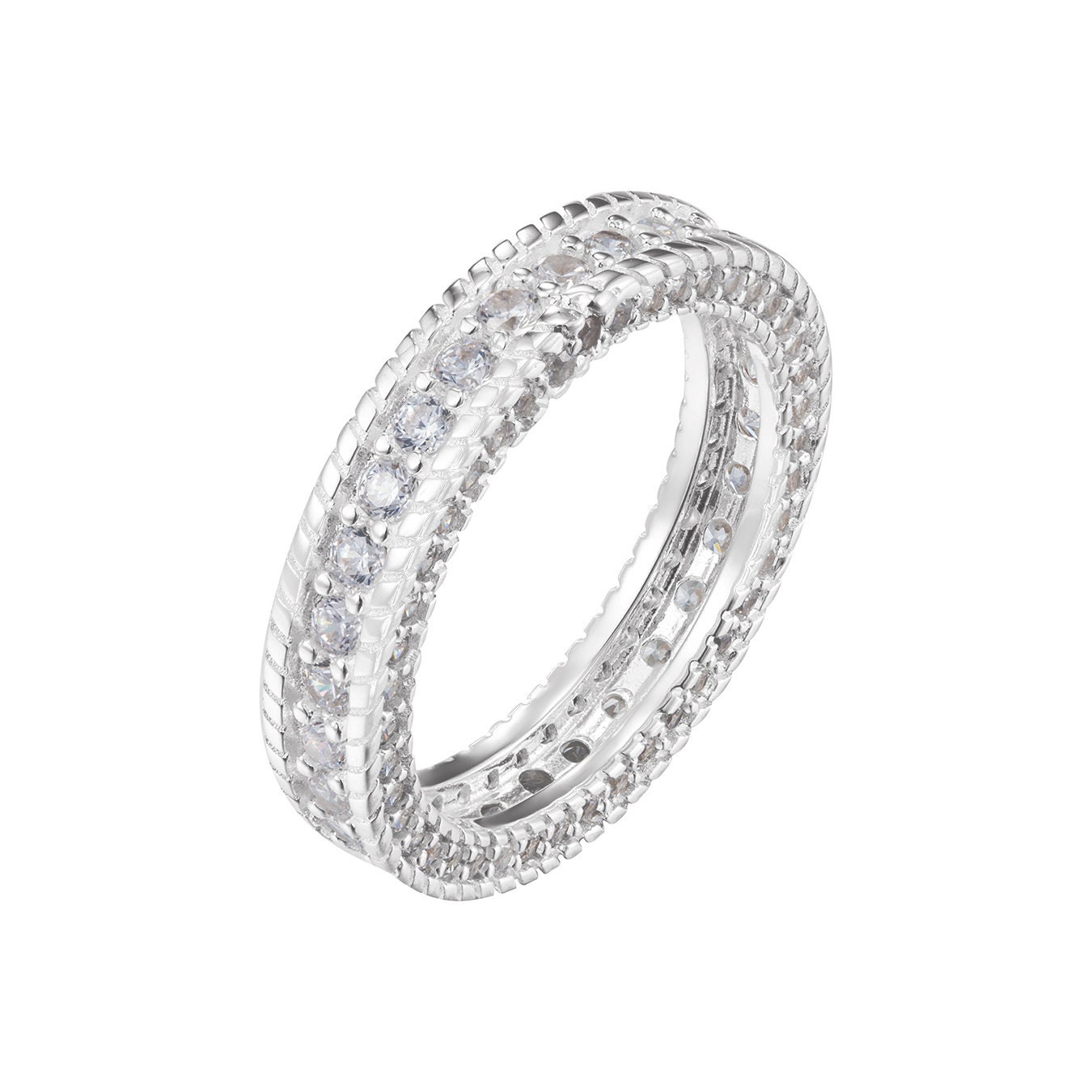Sparkling at every angle, this eternity band ring is not only set with glittering CZ stones down the centre of the shank, but also has a CZ stone detail set along the side of the ring. Made from sterling silver, this beautiful ring is a stunning accessory that will add a touch of glam to every outfit. The ring is presented in a lovely gift box, ready to give to that jewellery lover in your life, or to keep as a pretty treat for yourself.Available in UK ring sizes J, L, O, R, and T.Please note that if you are ordering more than one item that they will arrive in only one gift box. If you need more than one gift box then please message us and let us know!