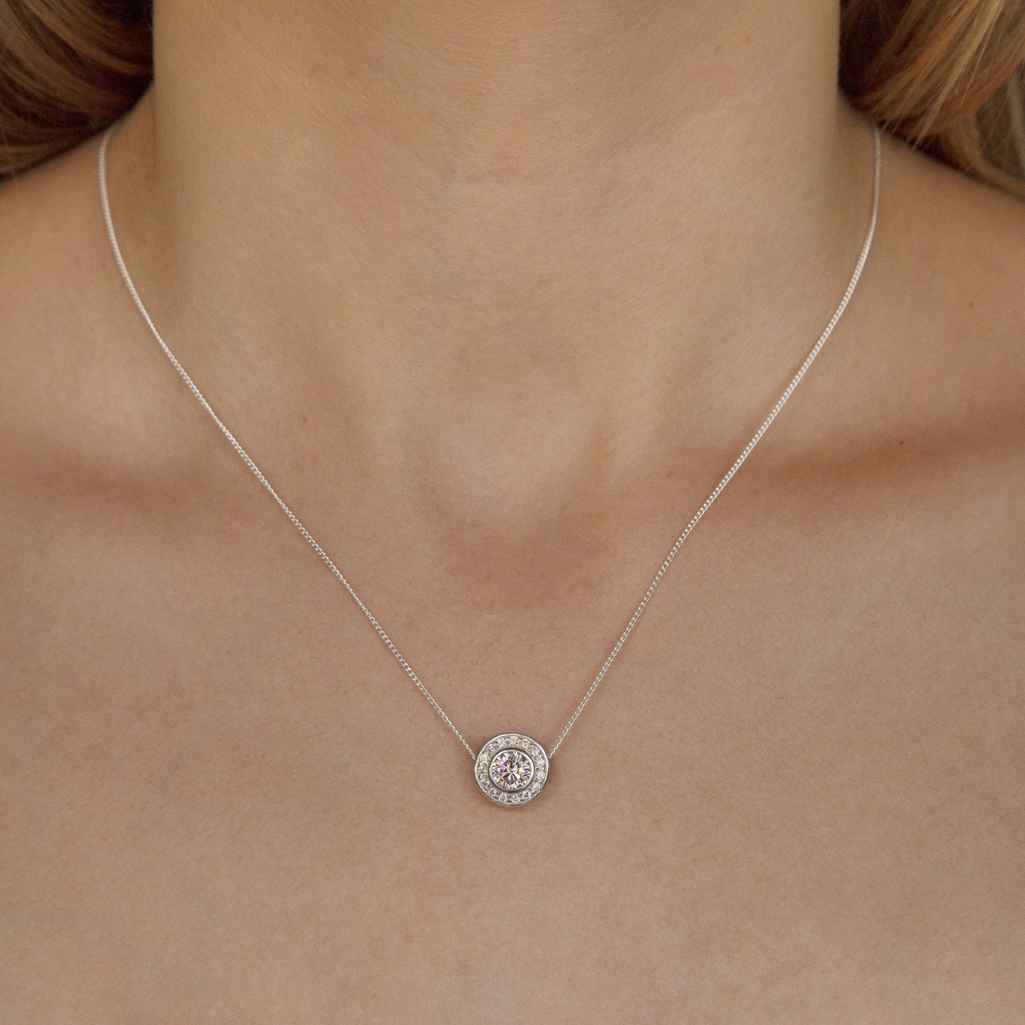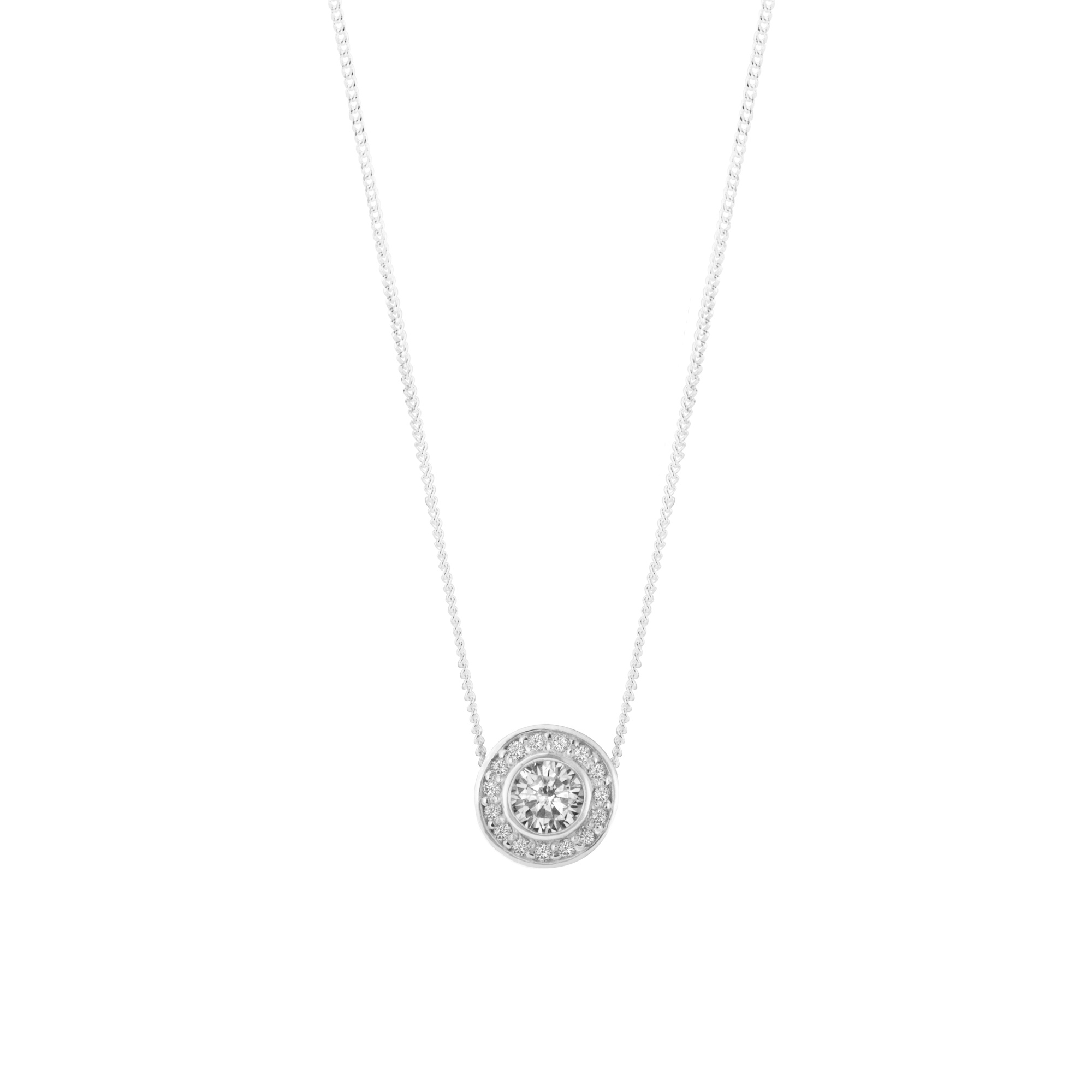 Sterling Silver CZ Halo Pendant Necklace
