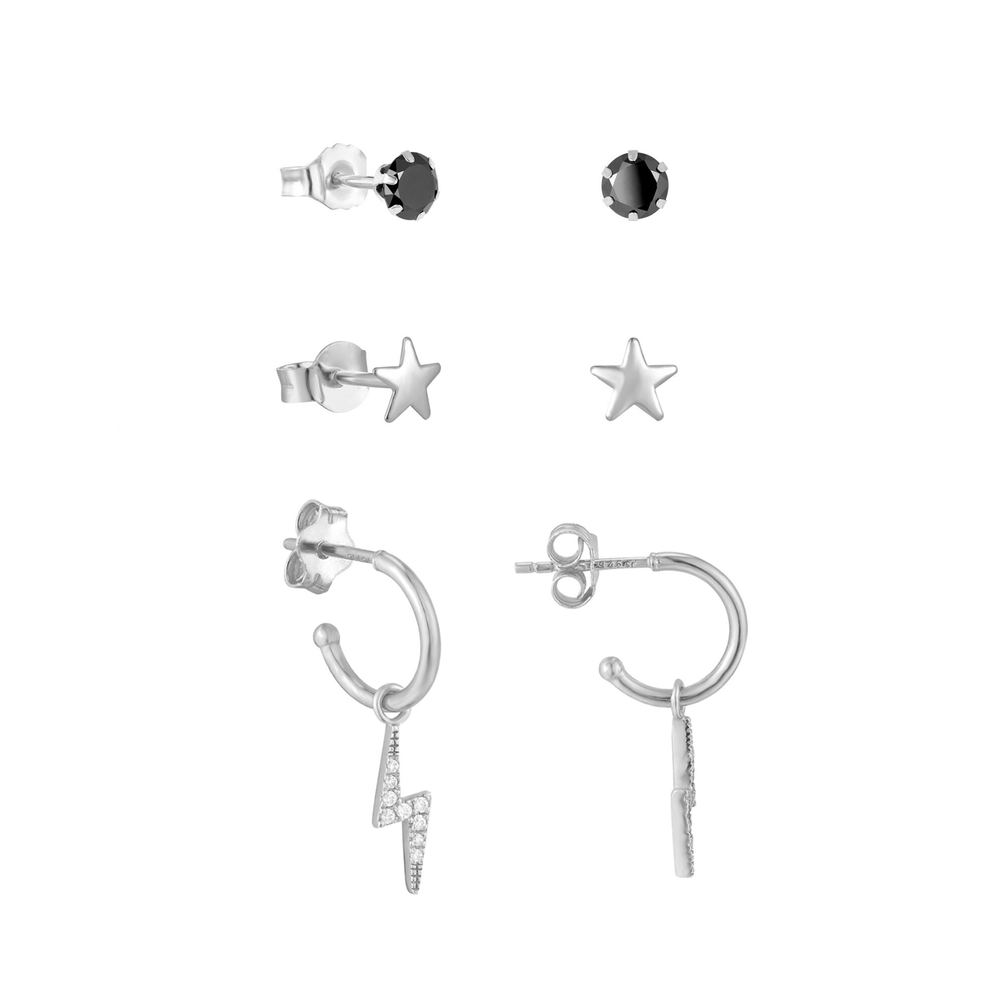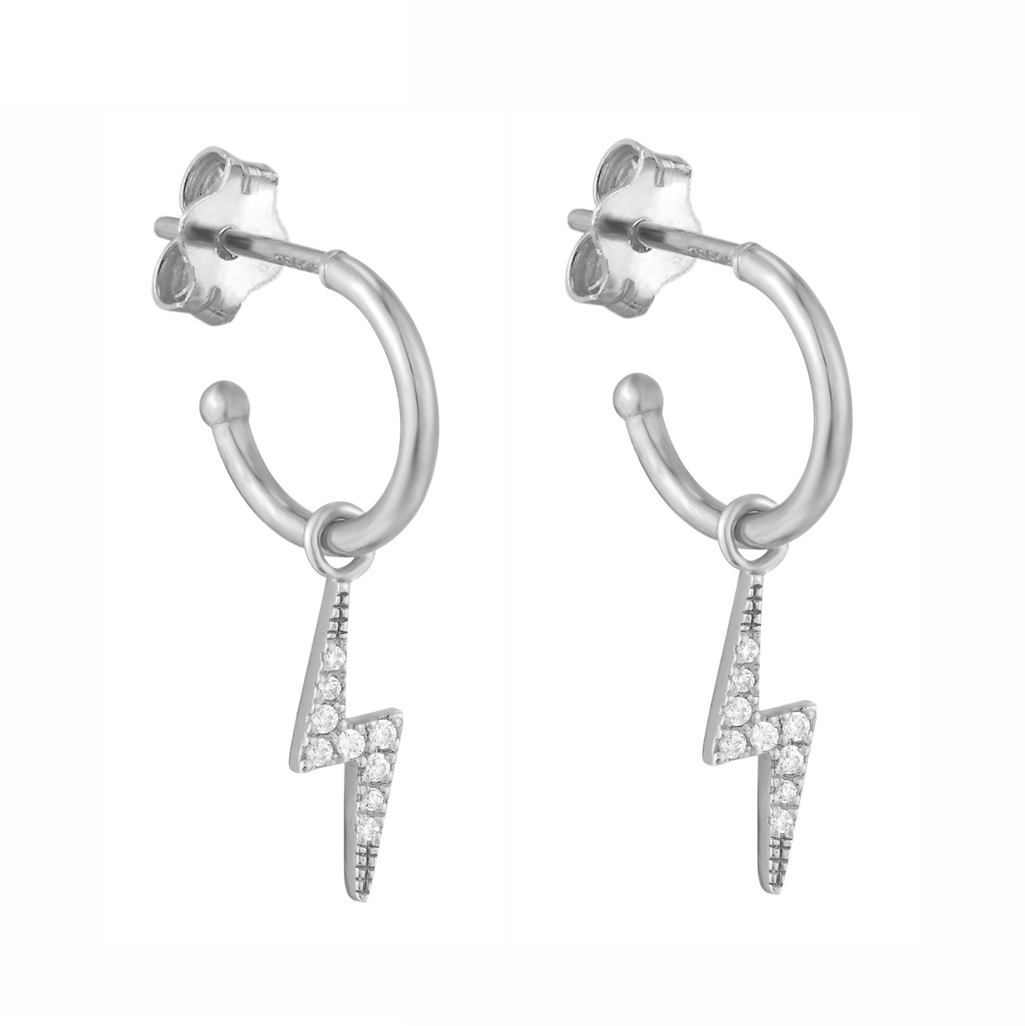 Make a statement with these sterling silver hoop earrings featuring a bold lightning bolt design adorned with sparkling cubic zirconia stones. The fusion of modern lightning bolt motifs with classic hoop shapes creates a striking contrast, perfect for adding edge and subtle sparkle to any outfit. A unique and stylish addition to your jewellery collection.