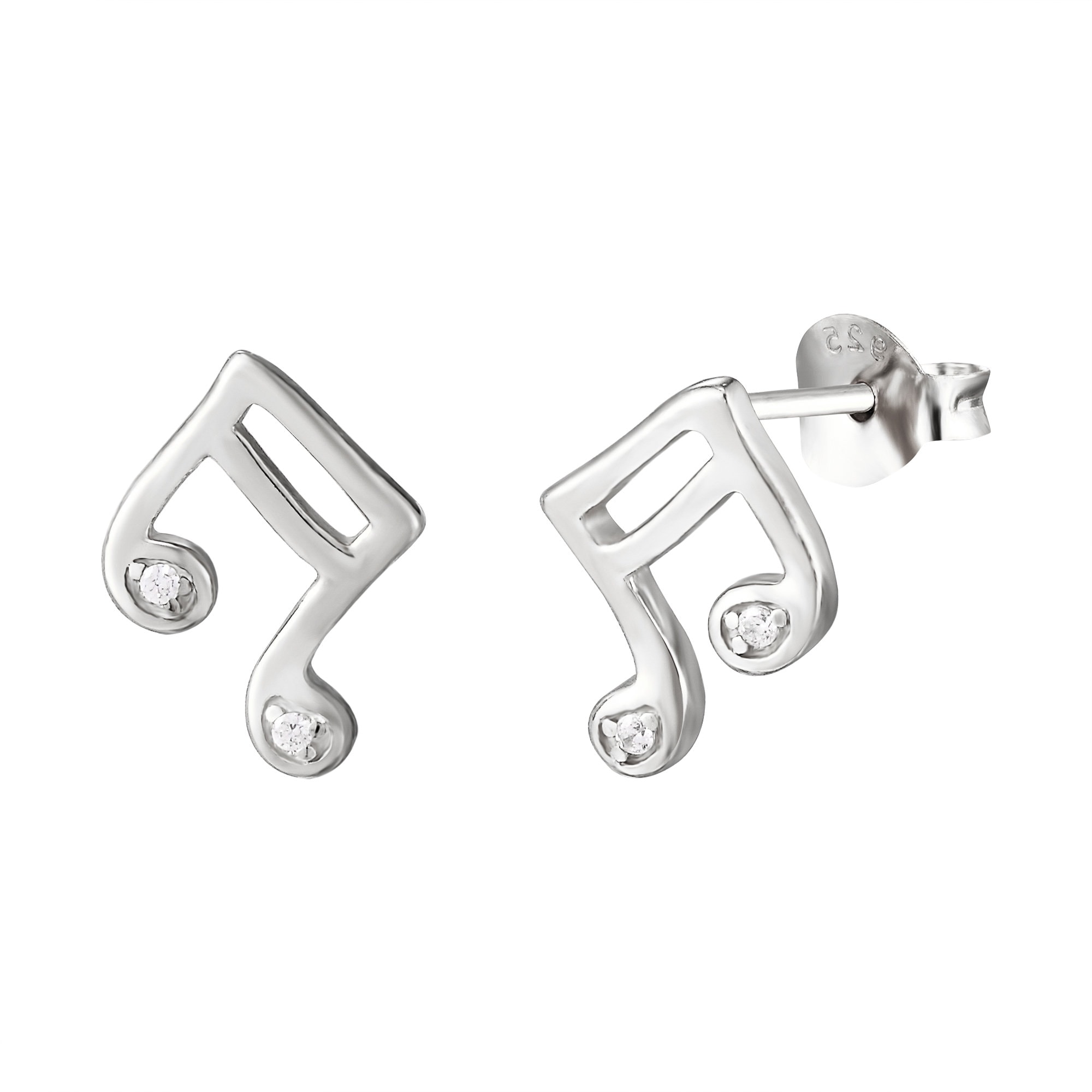 • Sterling Silver CZ Music Note Stud Earrings