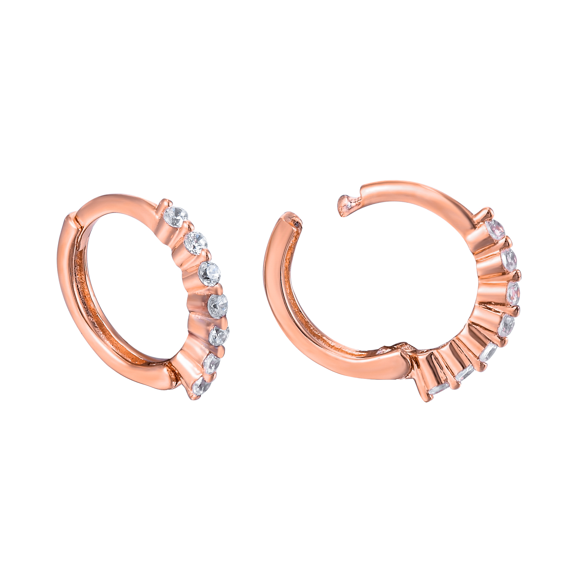 Bring a sparkling addition to any outfit with these pretty and feminine cz set huggies. Made from sterling silver and available rhodium plated, 9ct yellow gold plate or 9ct rose gold plate over sterling silver, these delicate earrings bring a chic twist to any outfit. Measuring 1.5mm (w) x 12mm (h), these huggies secure with a hinged fitting, simply click into place behind the ear. Arriving in a gift box, these delicate huggies make a special present for a loved one.