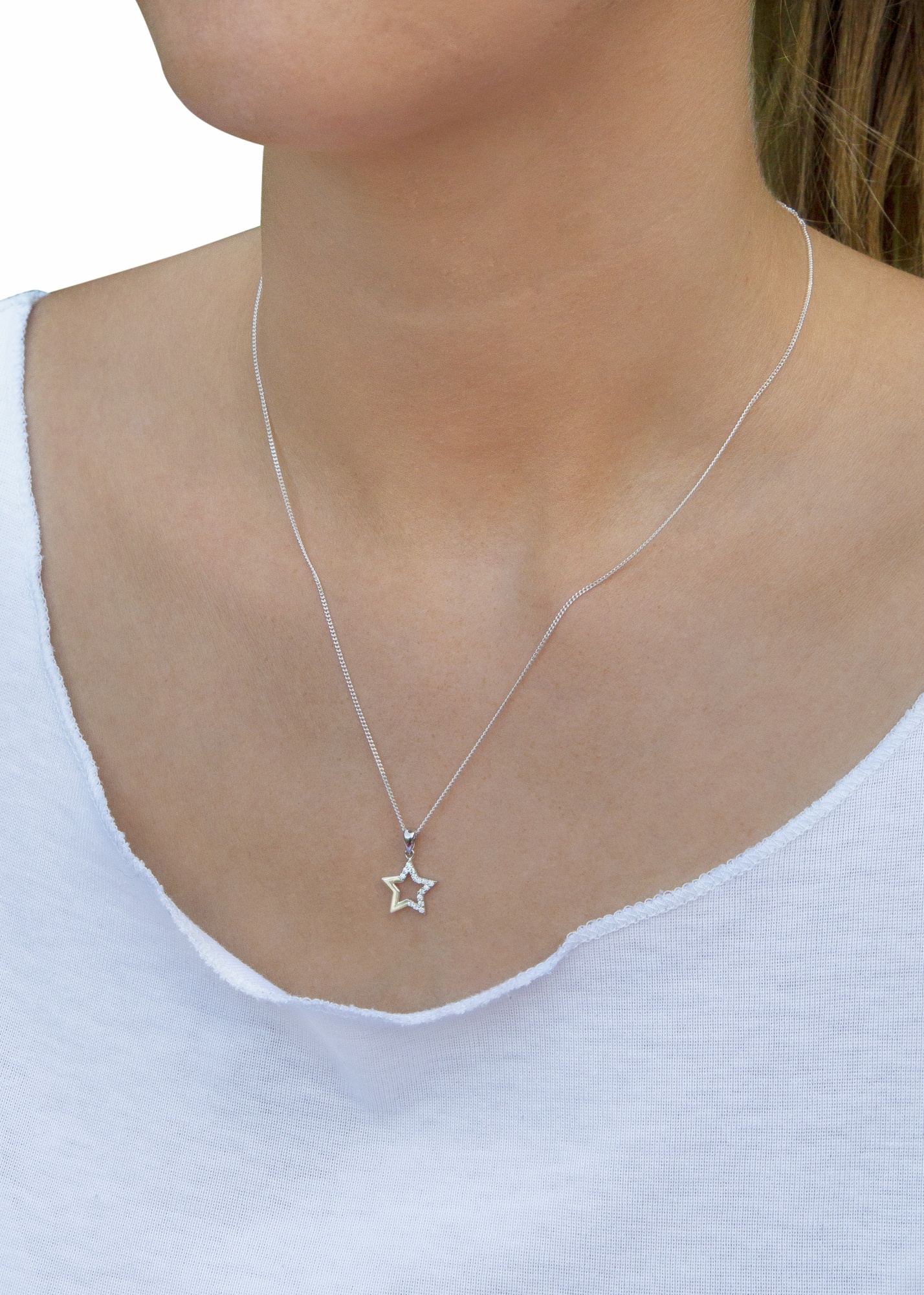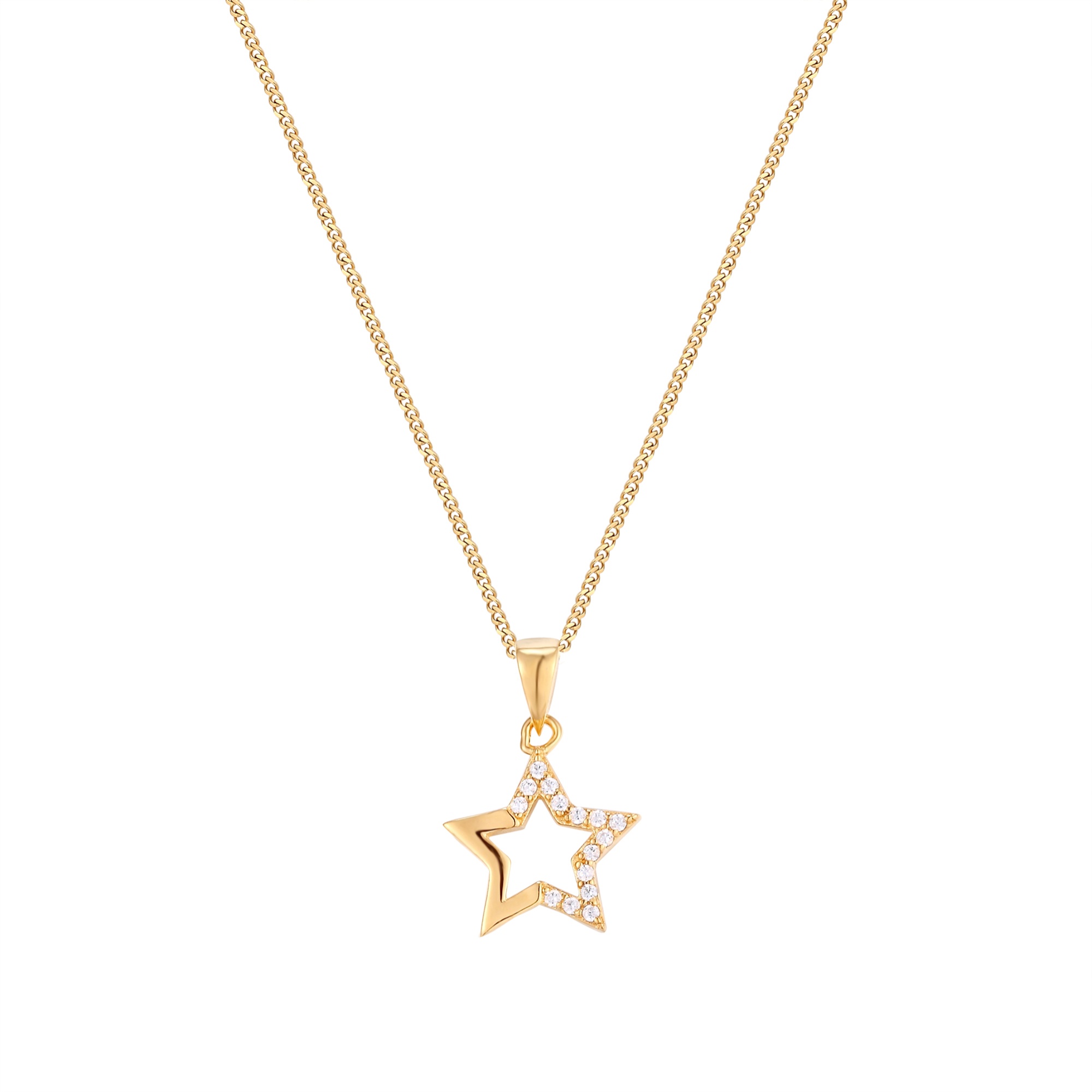 Sterling silver Cz star pendant. Available in sterling silver (.925), 18ct yellow gold plate over sterling silver (.925) or 18ct rose gold plate over sterling silver (.925).