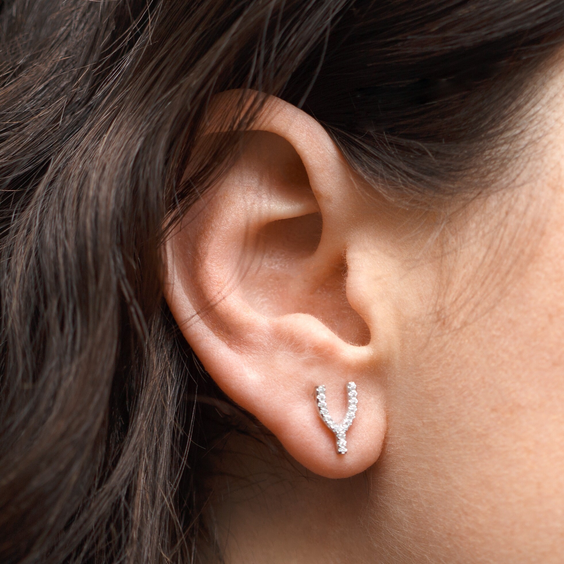 • Cz wishbone stud earrings