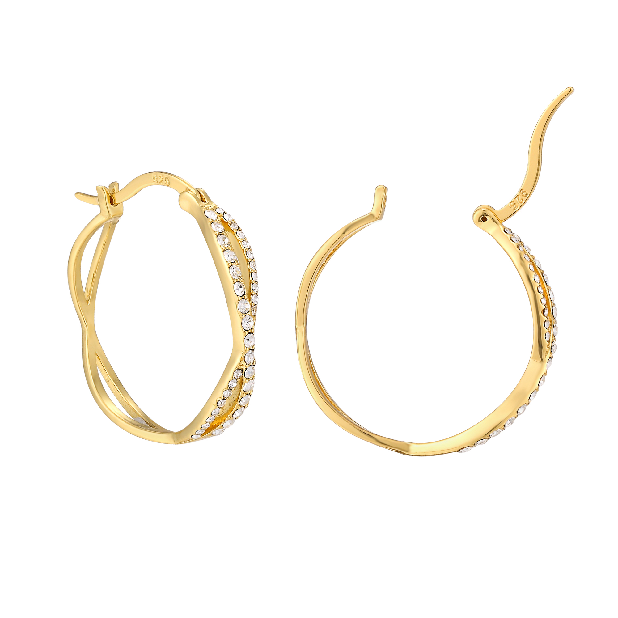 Sterling Silver Double Cross Over CZ Creole Hoop Earrings