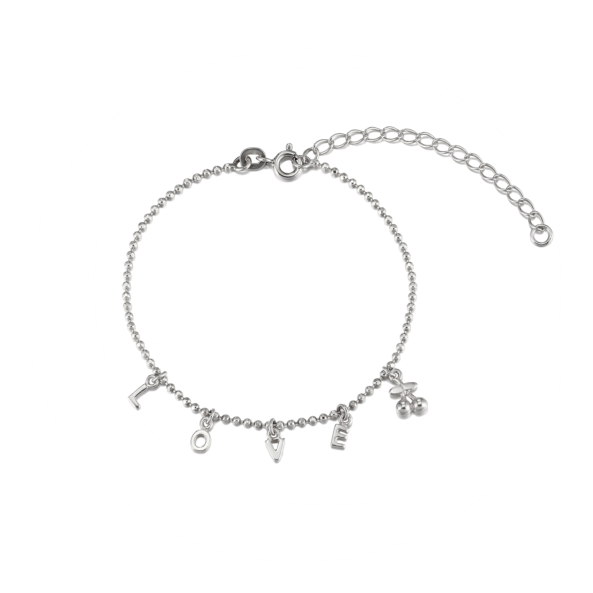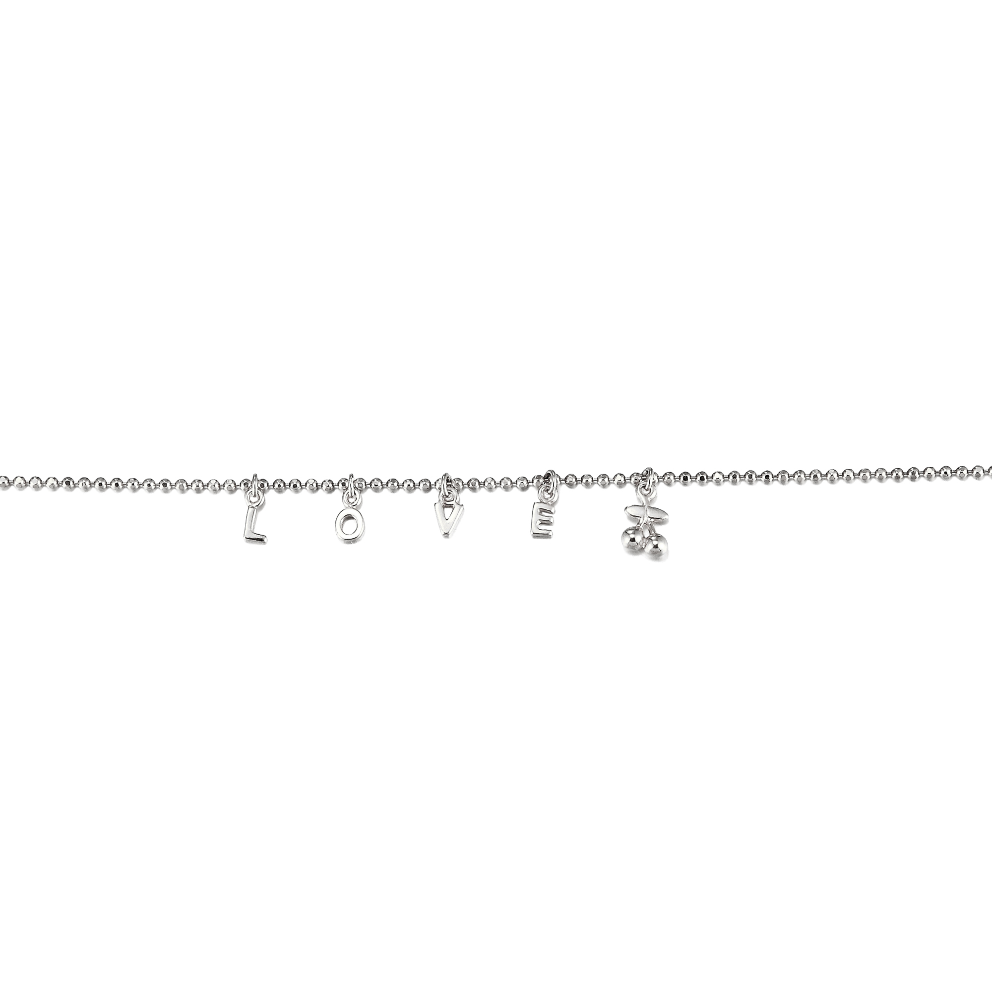 This elegant bracelet is made from .925 sterling silver and comes with “LOVE” charms and a polished sterling silver cherry charm. The perfect gift to show that special someone your love, this comes on a classic beaded chain and makes a beautiful statement piece. Comes with a 1″ extender chain.