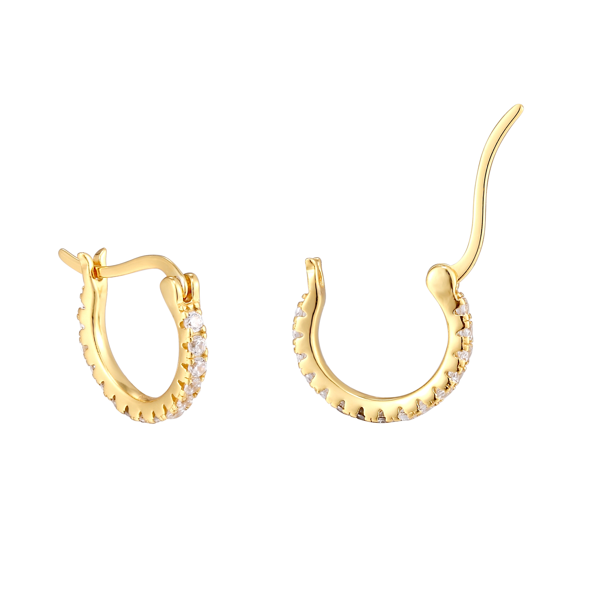 Look dazzling in these mini round cut CZ hoop creole earrings, made form the highest quality sterling silver and plated in 18ct yellow gold. This is the perfect accessory to add a little sparkle to your everyday wardrobe, adding a touch of glamour to any outfit. These earrings also arrive in a lovely presentation box, making it the perfect gift for those special people in your life.