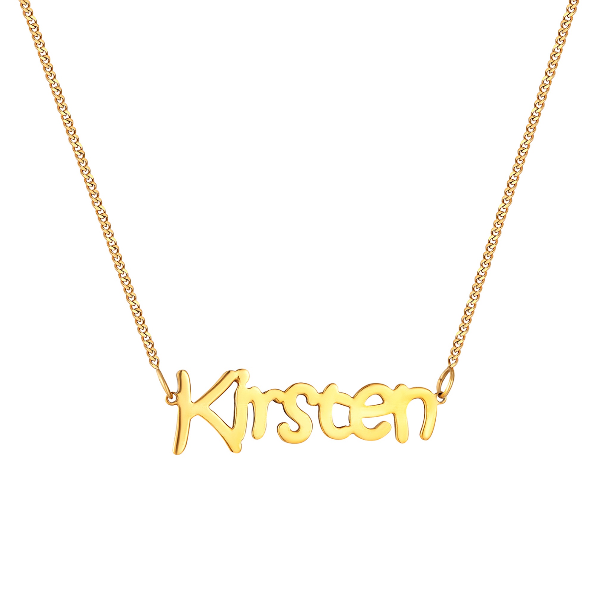Sterling Silver personalised name necklace. Available in sterling silver (.925), 18ct yellow gold plate over sterling silver (.925) or 18ct rose gold plate over sterling silver (.925).