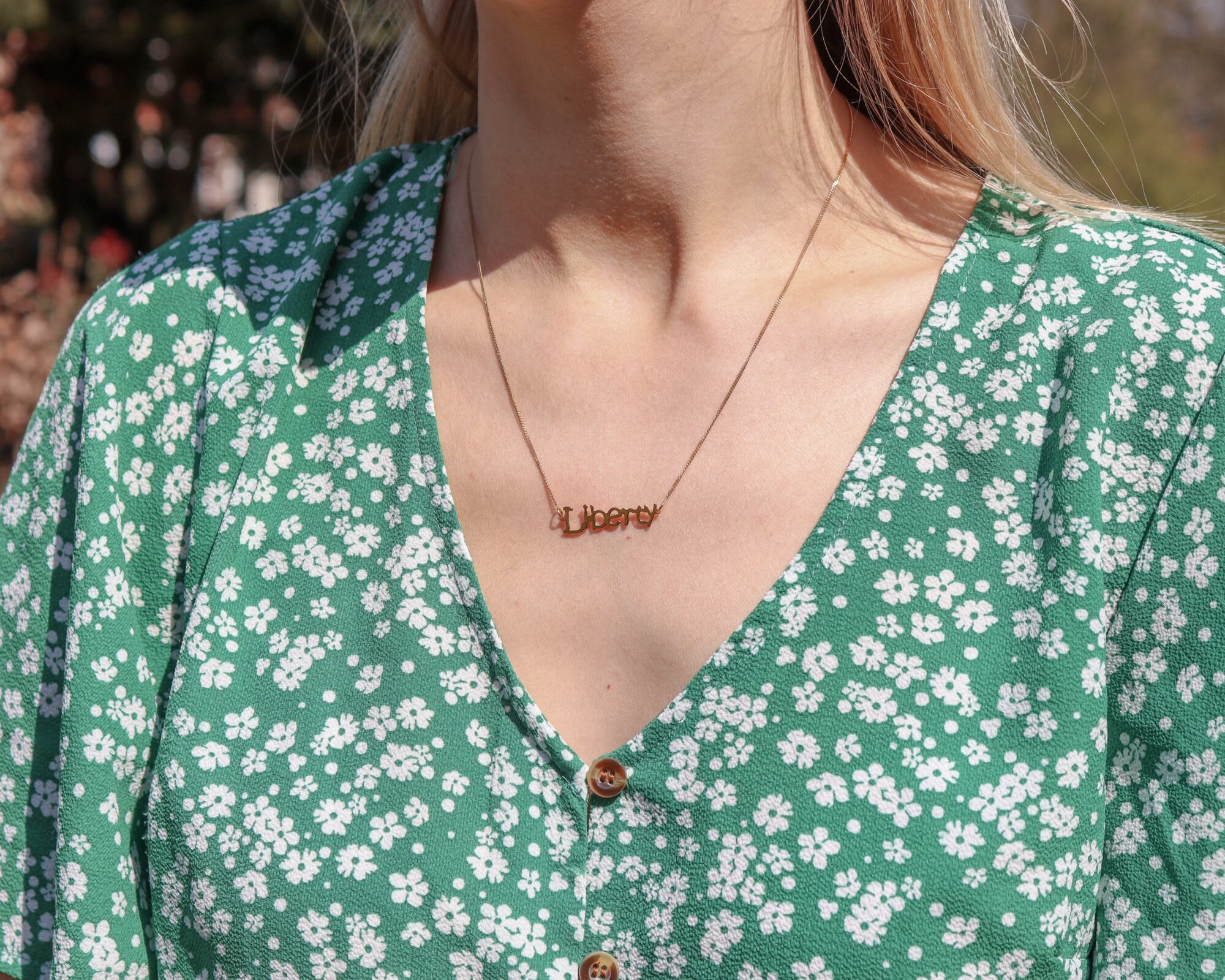 The necklace can be personalised with any name or phrase of your choice up to 10 characters!