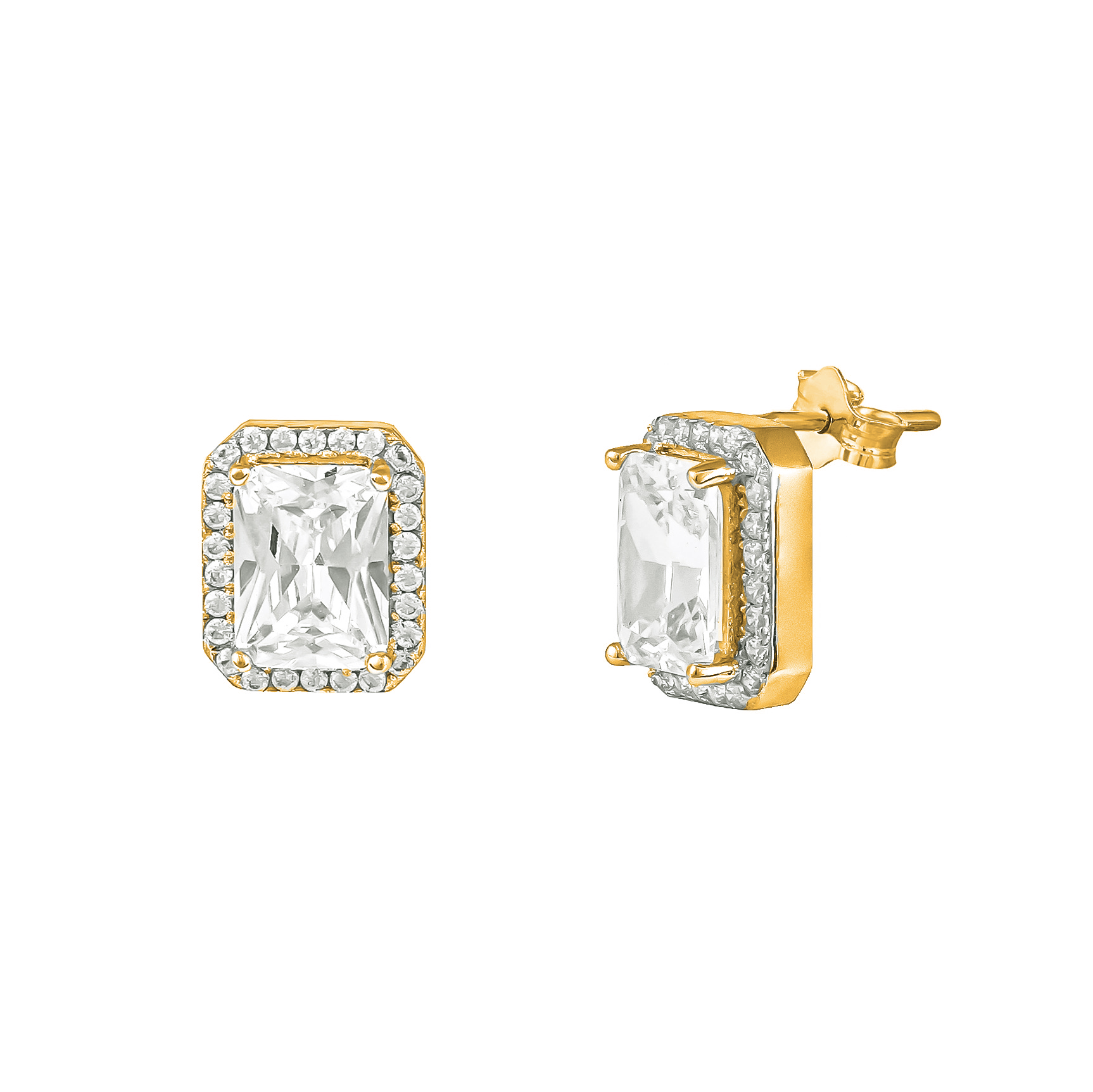 Sterling Silver Rectangular Halo CZ Studs – Silver or Gold