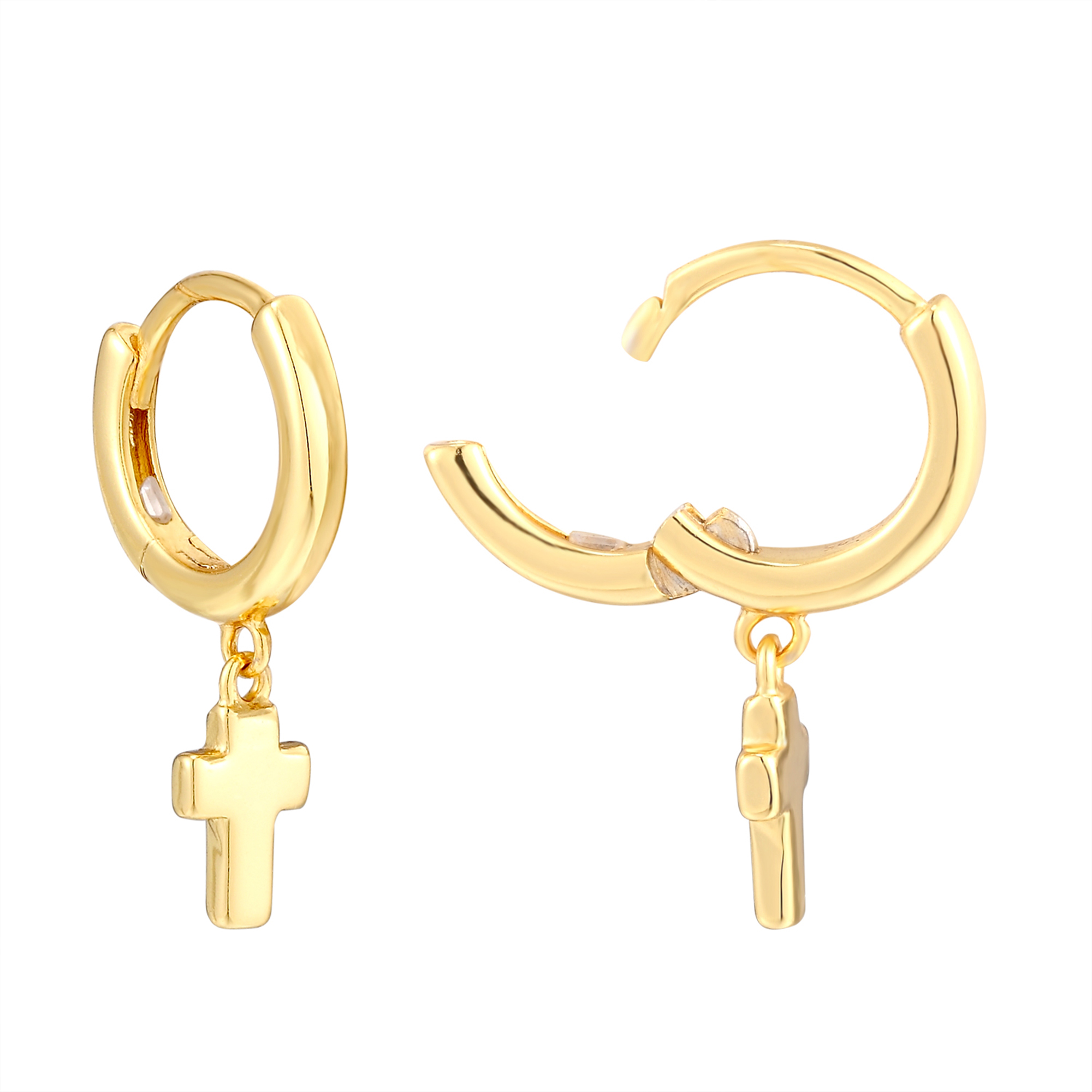 Made from the highest quality sterling silver and then plated in 18ct rose gold, these cross charm huggie earrings are perfect for everyday wear. These simple yet sophisticated huggies are wonderful for adding that little bit of character to your outfit and with the cross charm they are incredibly versitile and a staple of any jewellery collection. These earrings also arrive in a lovely presentation box, making them the perfect gift for those special people in your life.