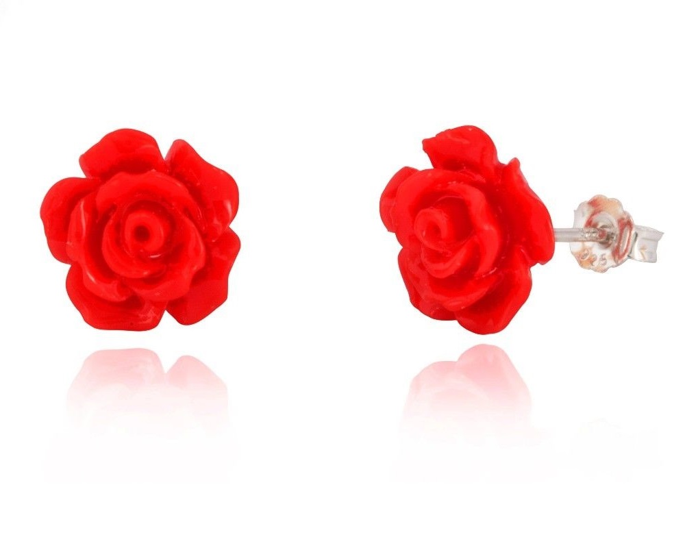 Classic and simple resin rose stud earrings, perfect for everyday wear. Made from 925 sterling silver, they are available in red, orange, pink, light purple, purple, green and pale yellow. They fix with a butterfly and post fastening and are sent in a gift box.