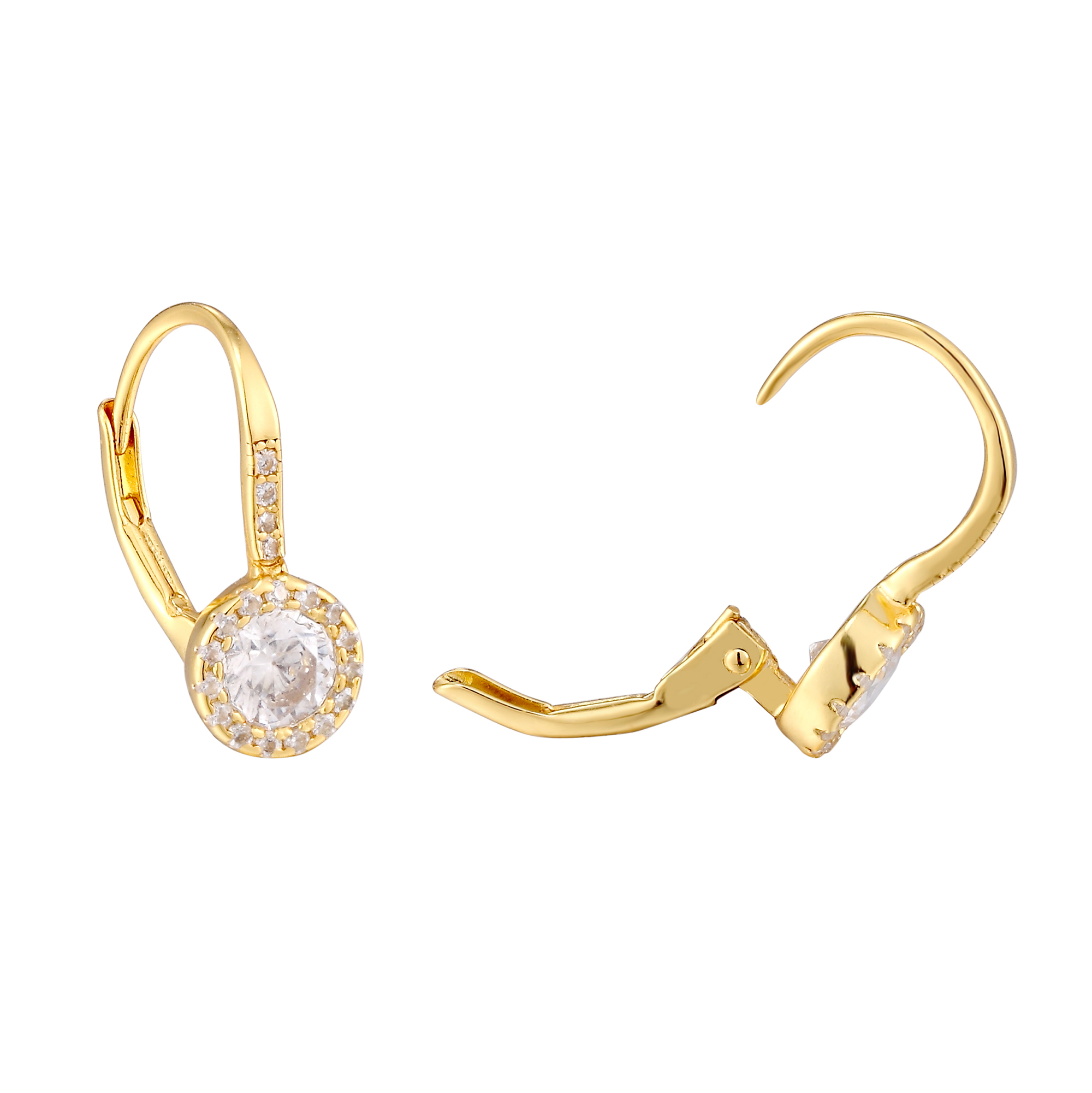Sterling Silver Round Cut CZ Stone Leverback Earrings