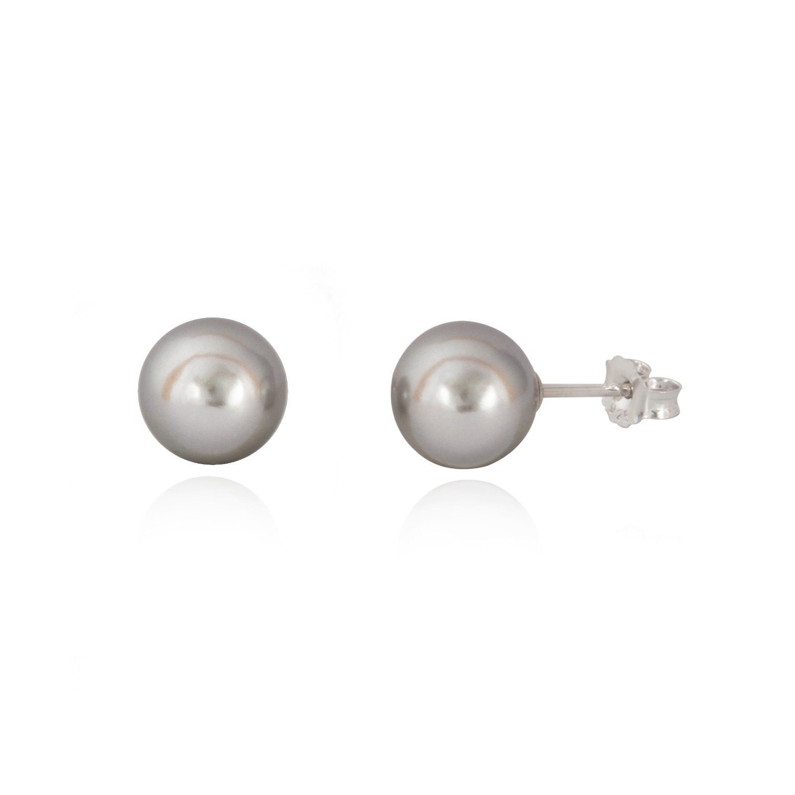 Classic and simple pearl button stud earrings, perfect for everyday wear. Available in white, light grey, dark grey, silver grey, silver blue, green and pink. Made from sterling silver and set with imitation pearls, they fasten with a butterfly and post. Arriving in a gift box they are ready to give to someone special or just to treat yourself.