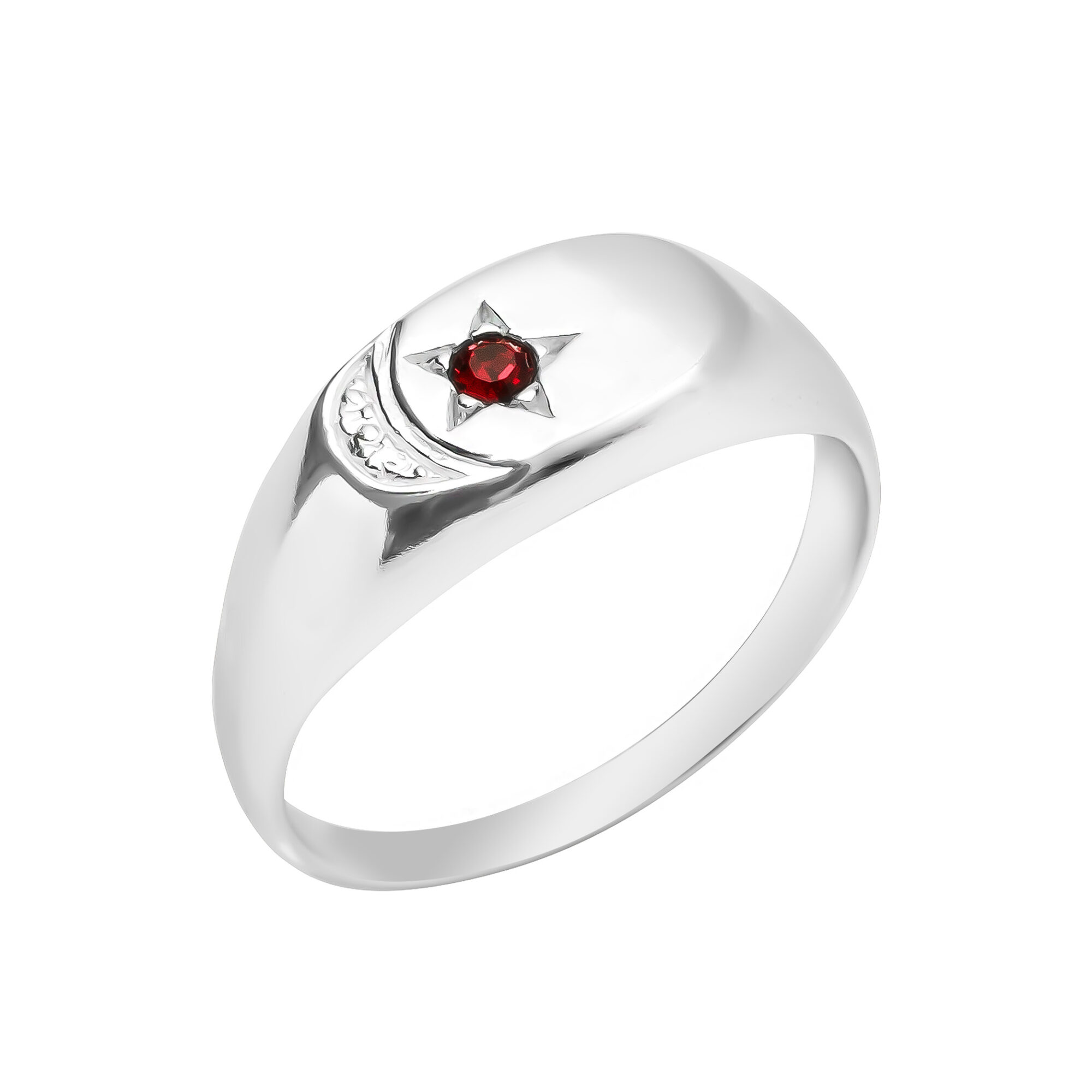 Sterling Silver Signet Ring with Moon Design and Diamond Cut CZ Stone