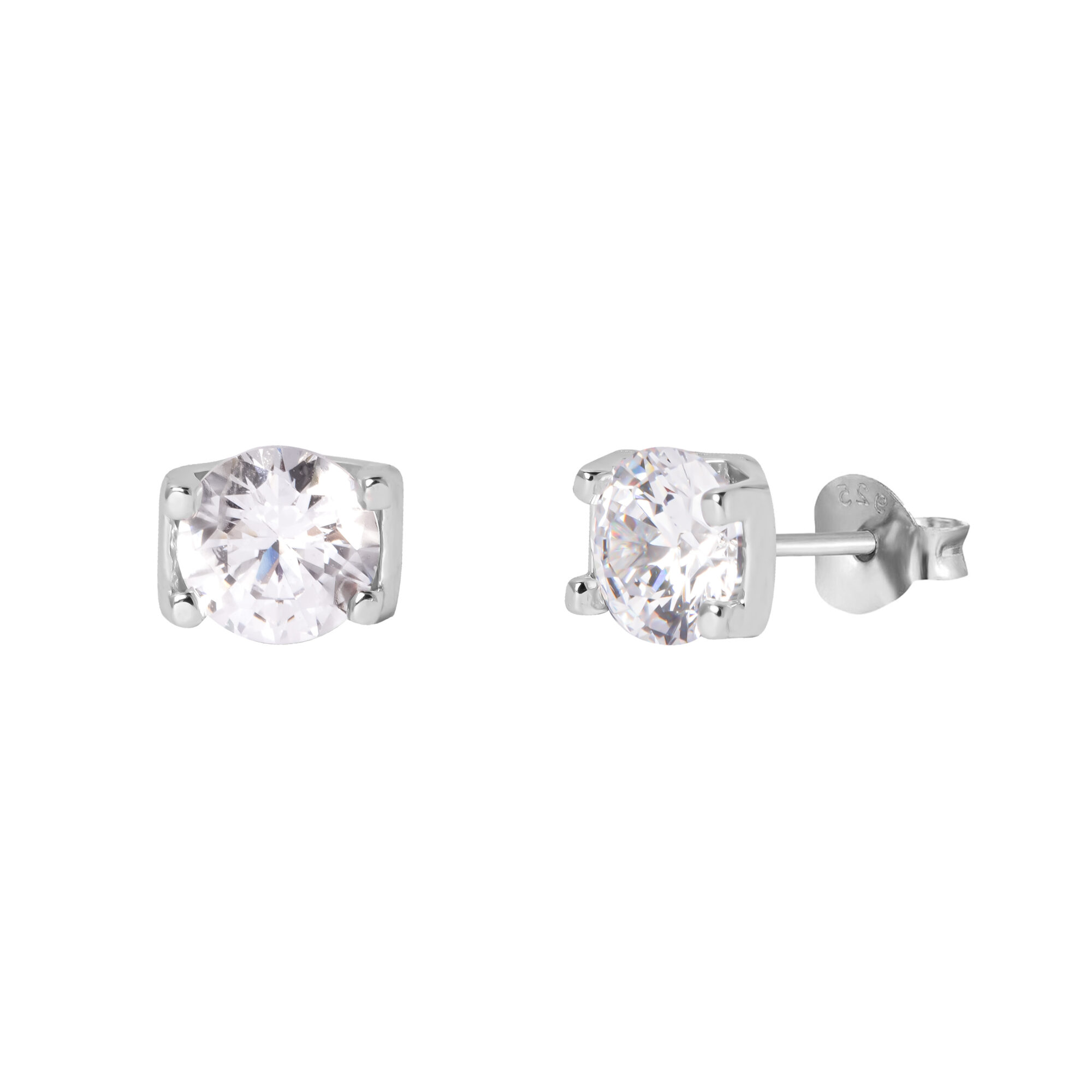 These beautifully classic stud earrings are made from sterling silver and they fasten behind the ear with sterling silver butterflies. Set with a 6mm CZ stone, these earrings sparkle and look fabulous on, bringing a hint of understated glamour to your look. They come in a lovely gift box ready for gifting.