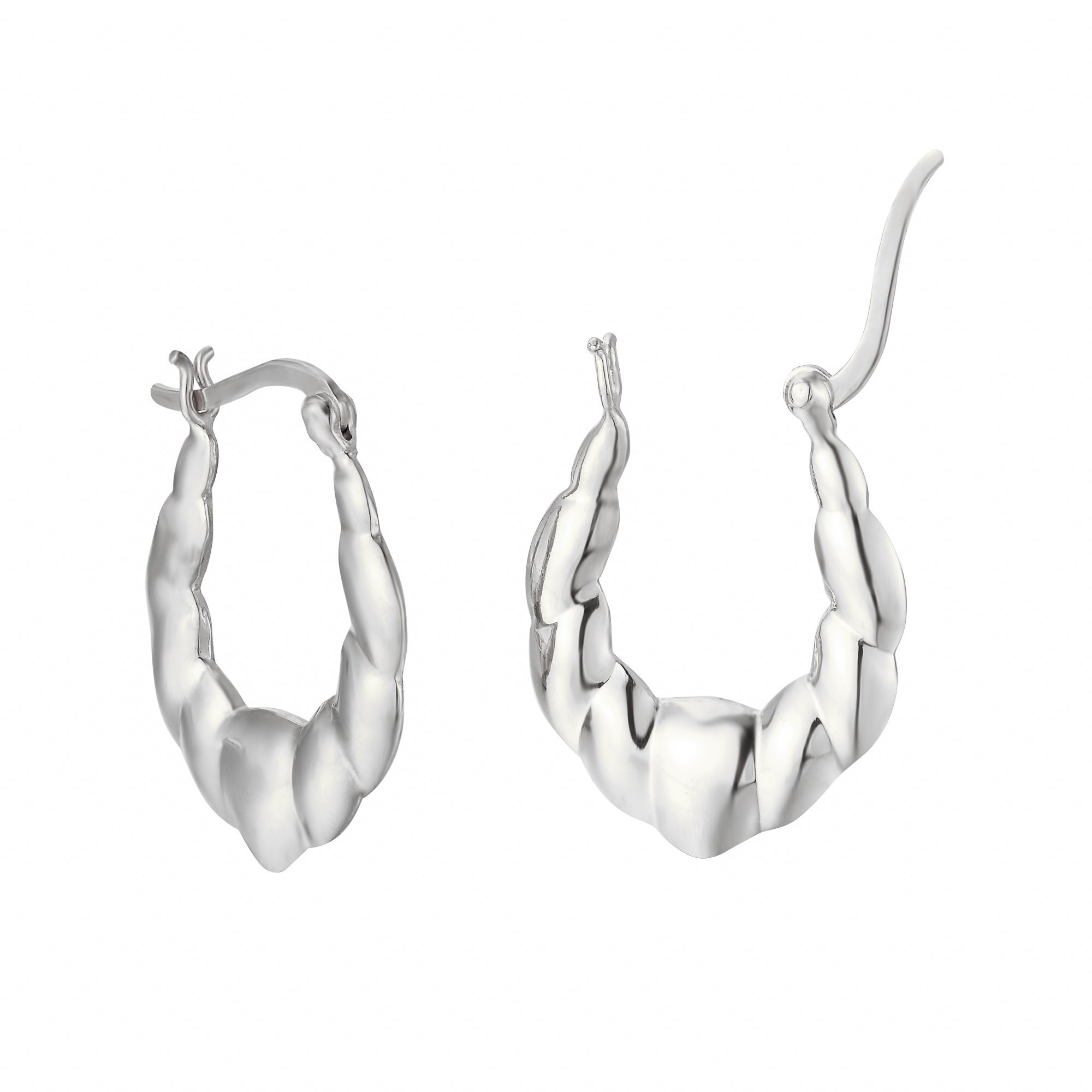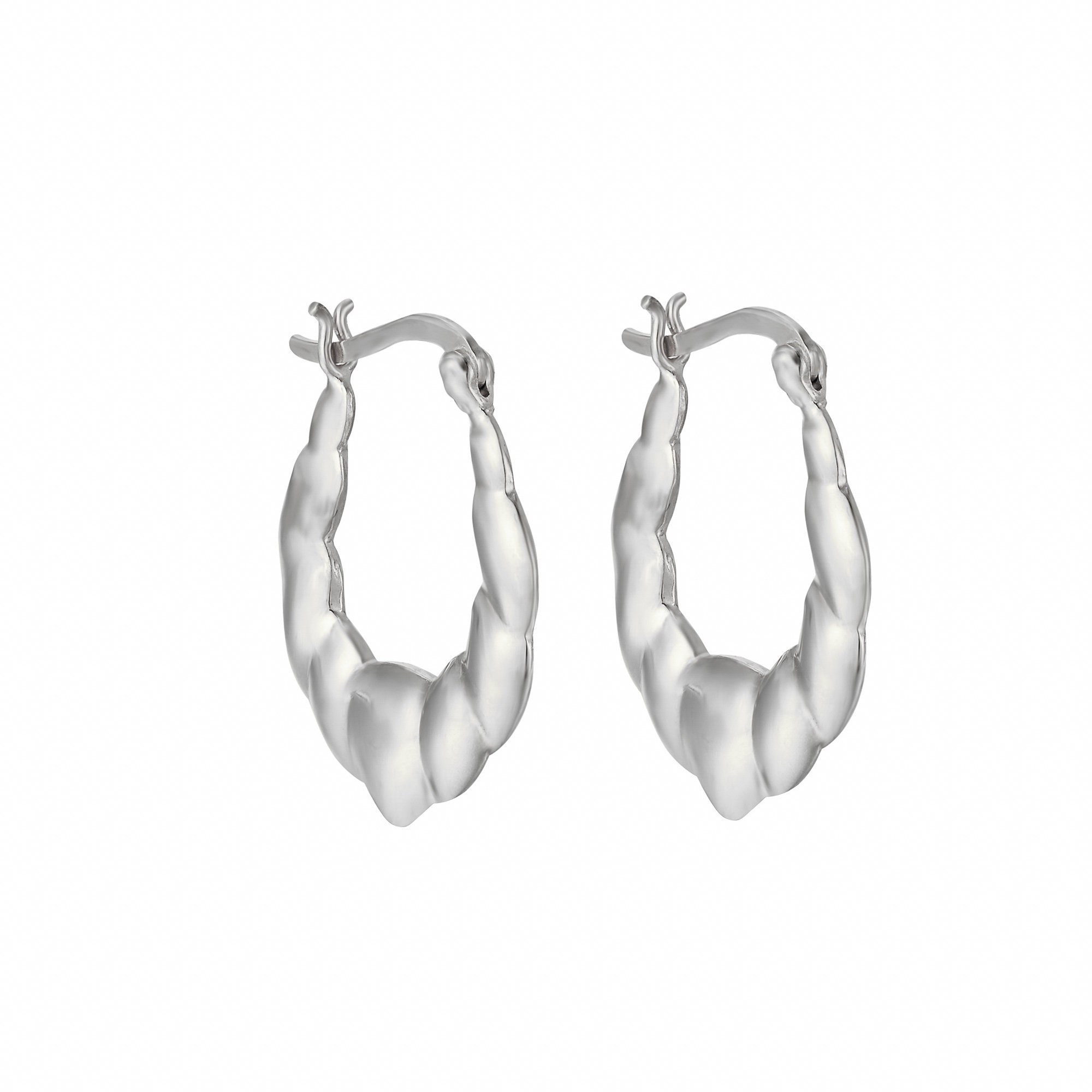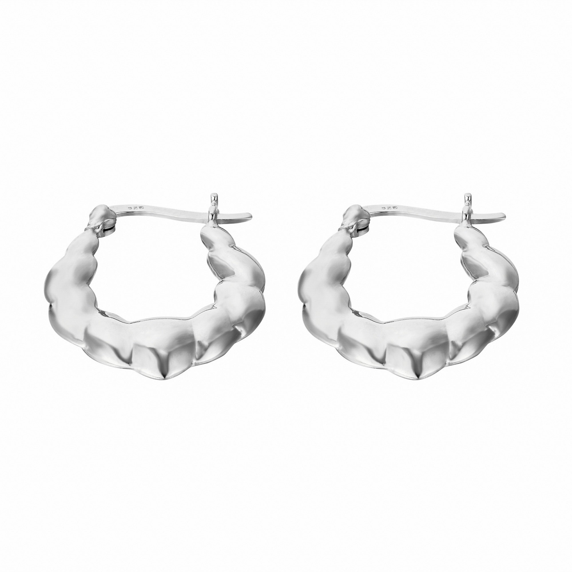 These simple creole hoop earrings are made from sterling silver and fasten at the back with a click in creole fitting. They have a textured edge and are a chic addition to any outfit, suitable for everyday wear. Arriving in a gift box, these earrings are ready to give to someone special.Measures 20mm (w) x 26mm (h).Please note that if you are ordering more than one item that they will arrive in only one gift box. If you need more than one gift box then please message us and let us know!