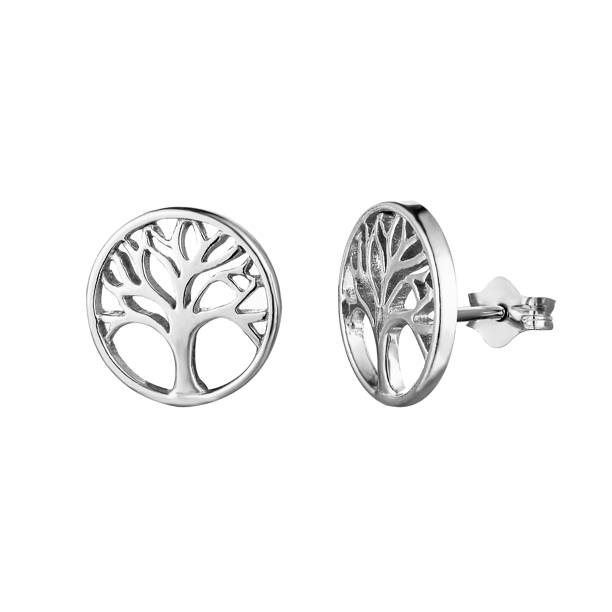 Sterling silver tree of life stud earrings. Available in sterling silver (.925), 18ct yellow gold plate over sterling silver (.925) or 18ct rose gold plate over sterling silver (.925).