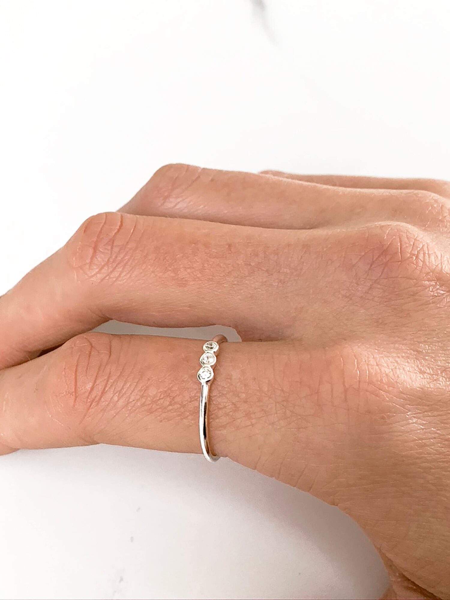 • Sterling Silver Trio Bezel CZ Ring
