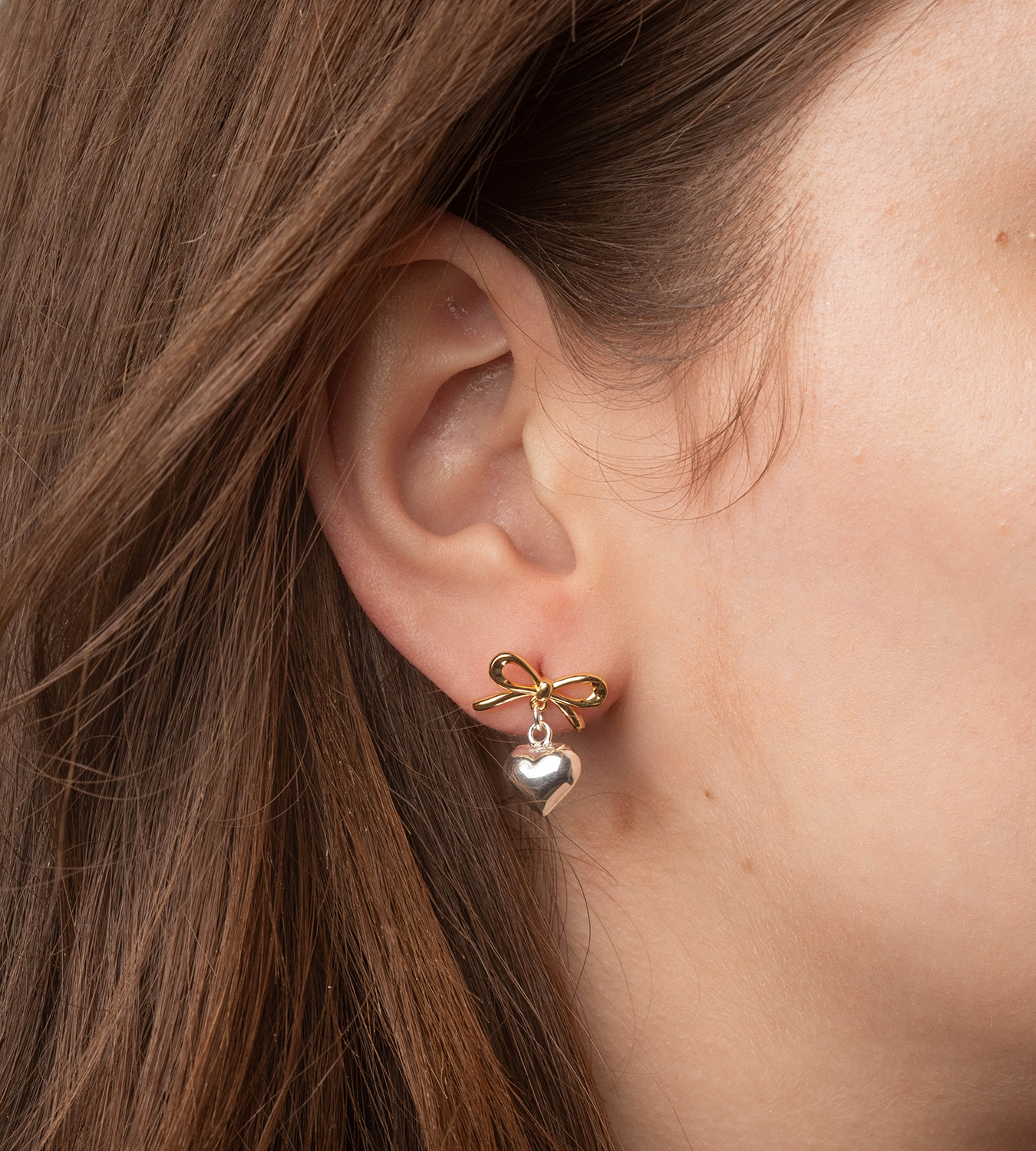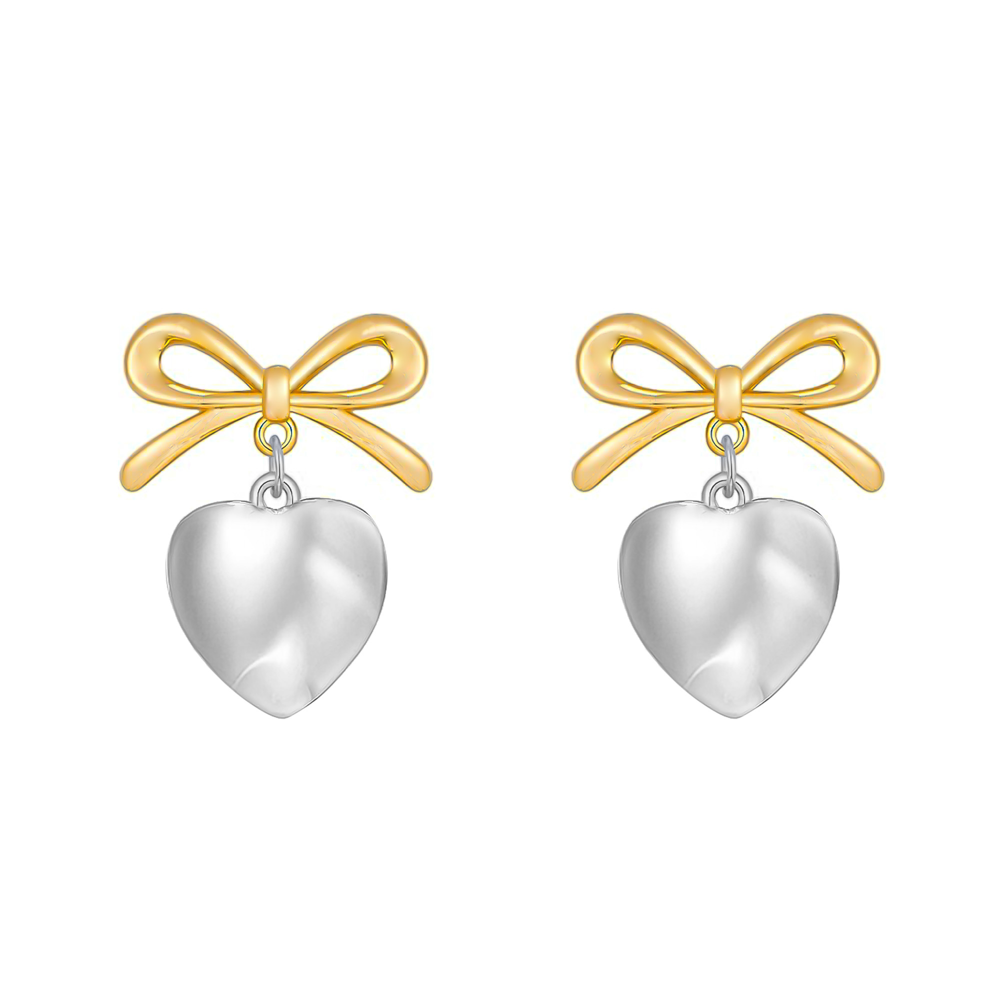 - Suspended from the bow is a high polished heart charm that moves gracefully with you, catching the light and adding a sense of fluid elegance to your silhouette.