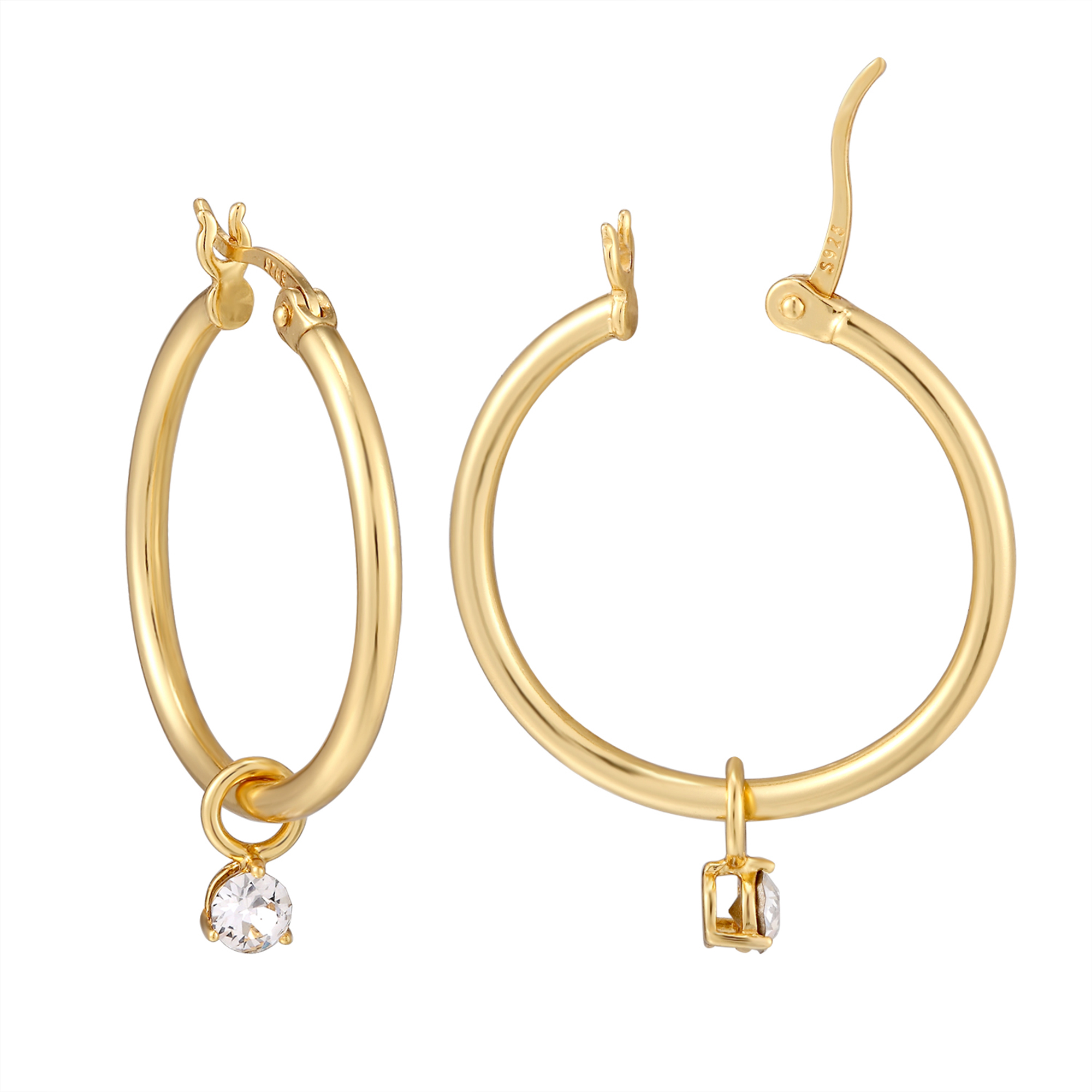 Sterling Silver White CZ Drop Charm Huggie Earrings