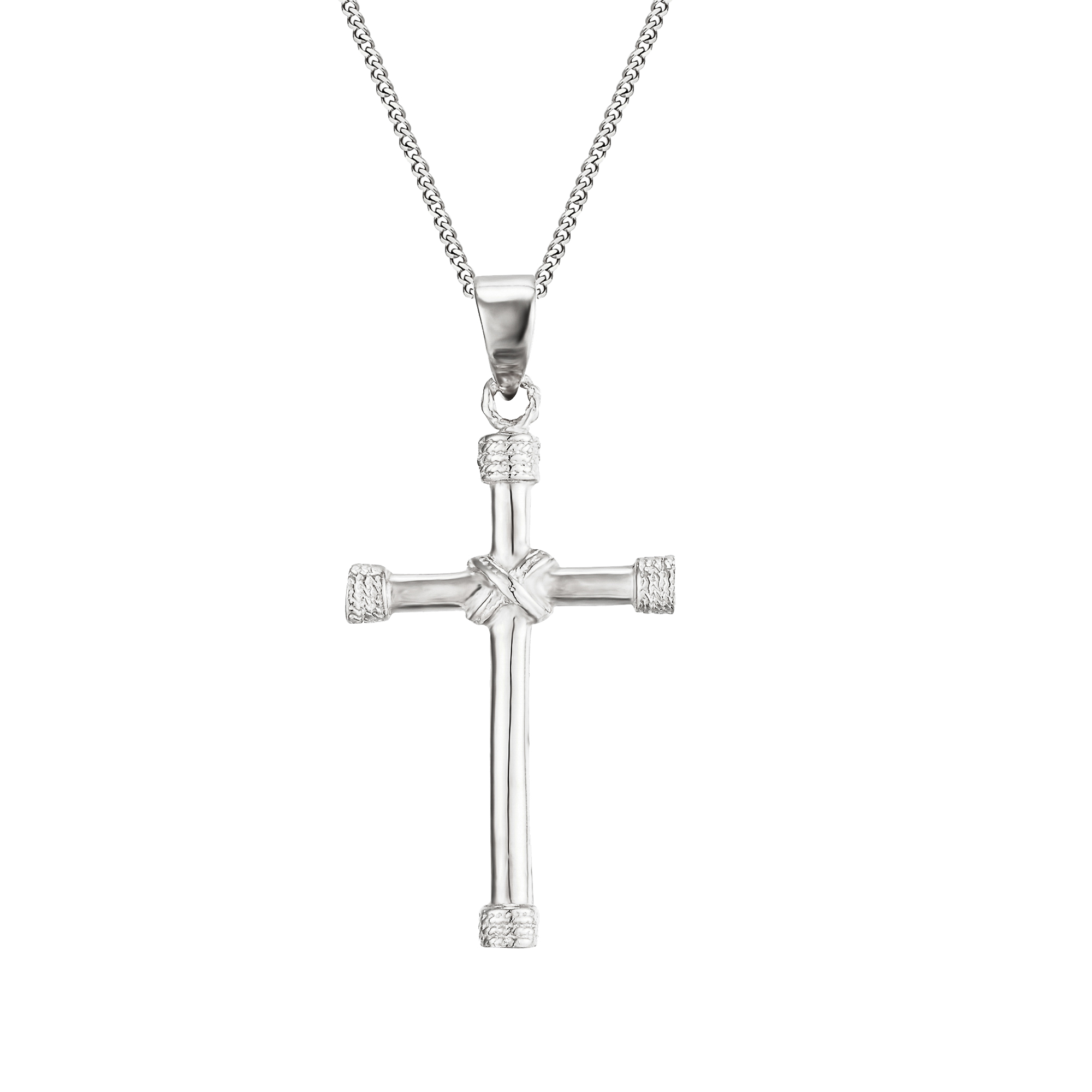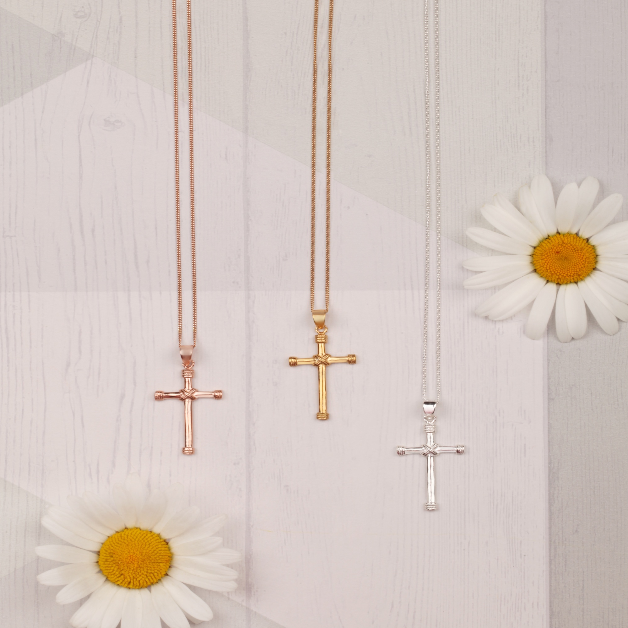 Sterling silver cross pendant with wrapped ends and middle. Available in sterling silver (.925), 18ct yellow gold plate over sterling silver (.925) or 18ct rose gold plate over sterling silver (.925).