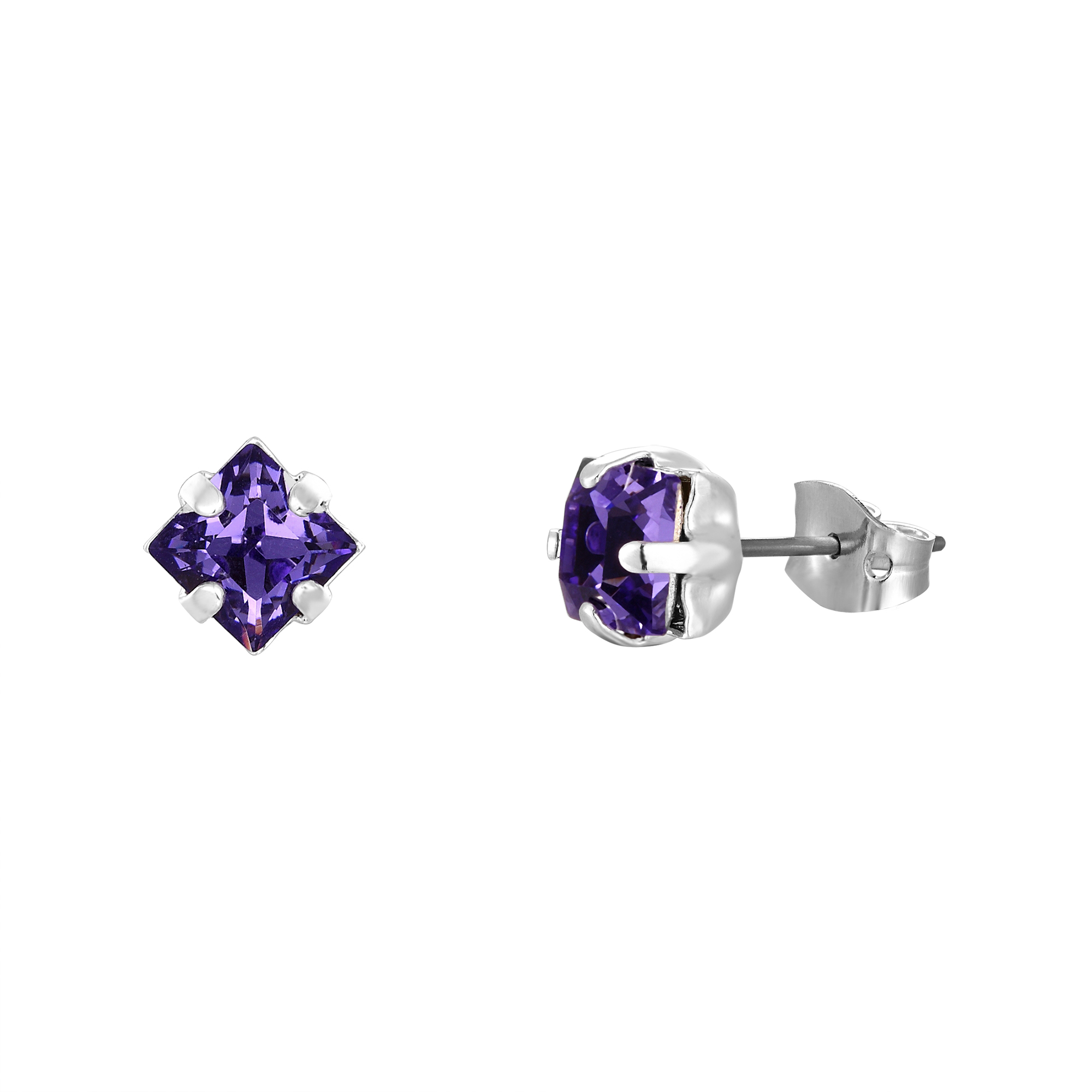 Get treated fair and square today, with these dainty Swarovski Crystal square studs. Brighten up every day with earrings that glisten in the light. Sold as a pair of studs and available in Silver or 18ct Gold plated over brass. Also available with comfortable Clip-On fitting.