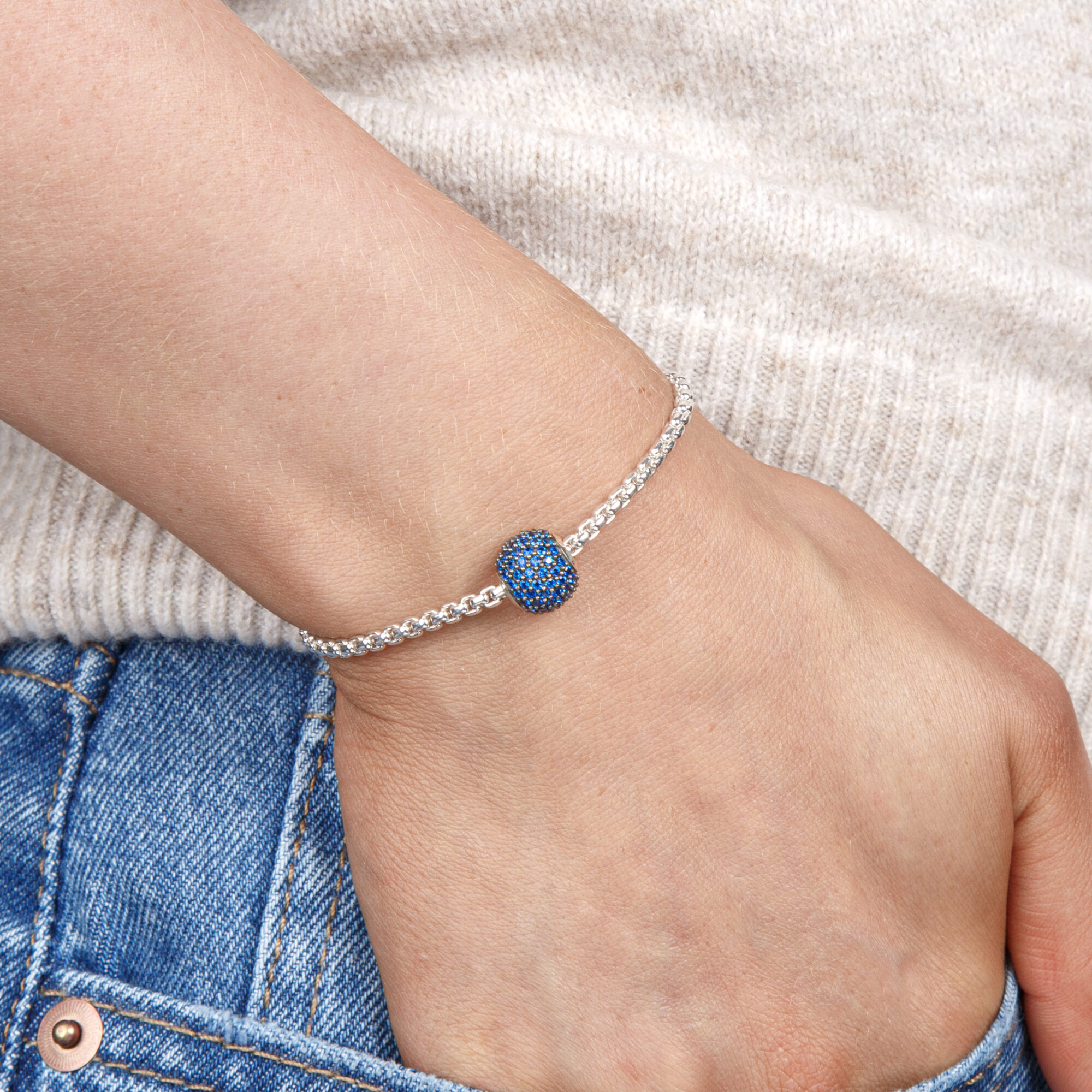 The blue, synthetic spinel-pave of the CAPRI KARMA BEAD made of 925 Sterling silver is a real treat of Mediterranean flair to help make stress and bustle disappear.