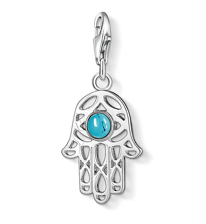 The Hand of Fatima with blue eye crafted from turquoise (simulated) is not just a really stylish accessory, it also offers to protect its wearer against evil.