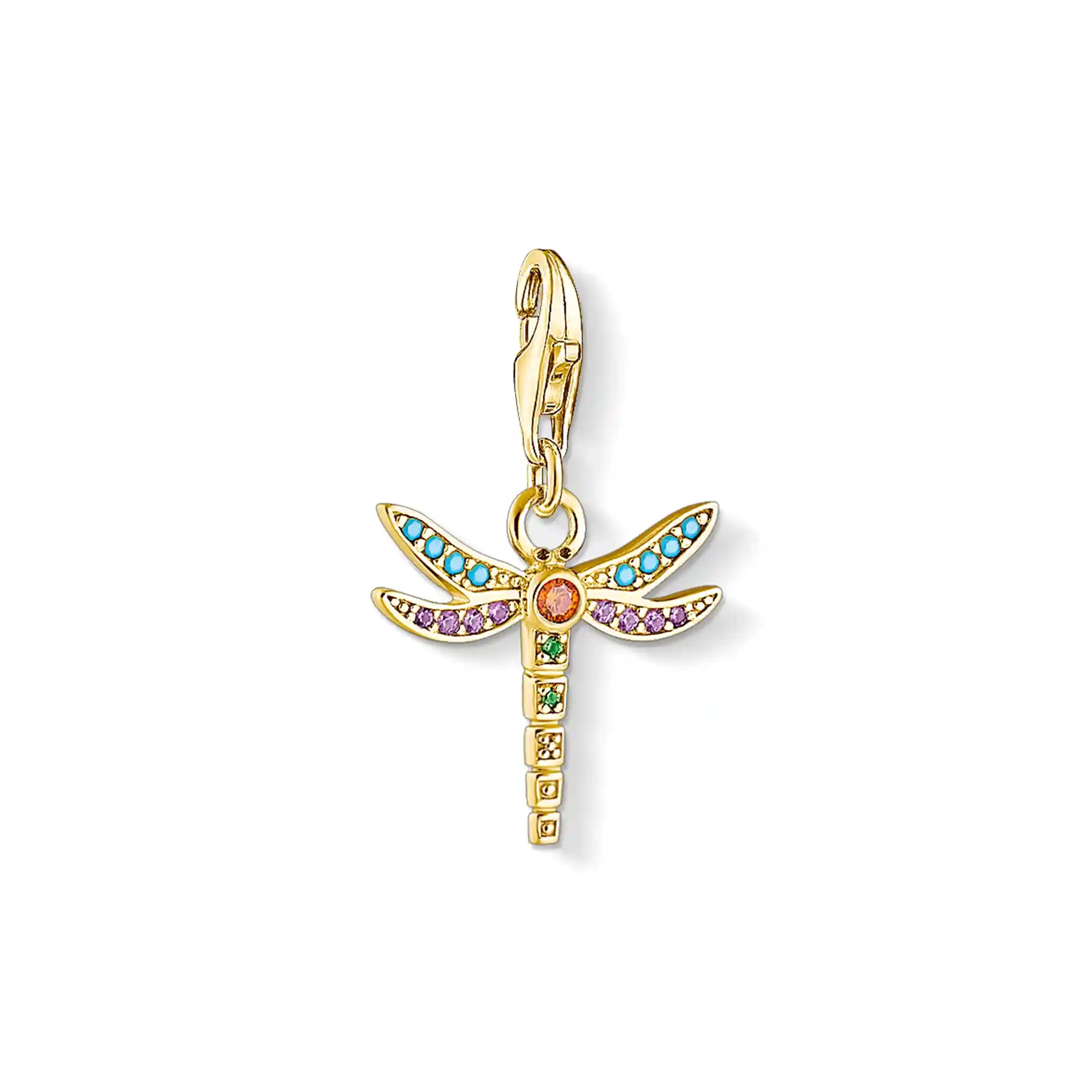 A journey to paradise: Creative, Boho-inspired and playful at the same time, the dragonfly Charm crafted in rich detail with colourful stone embellishment stands for lightness and positive energy. Also available in sterling silver.