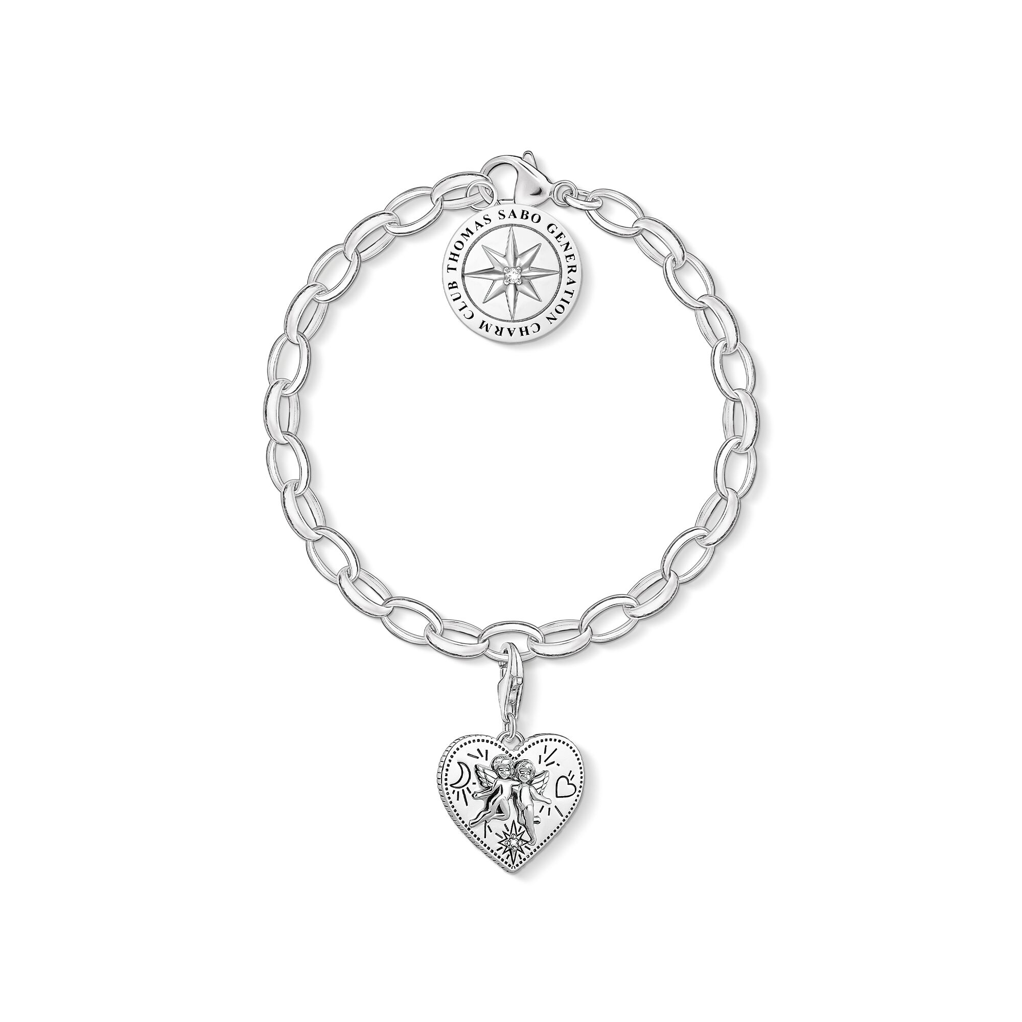 • This set typically features a classic Thomas Sabo Charm Club link bracelet paired with a detailed cherub pendant. The cherub is masterfully crafted in 3D, showcasing intricate wing details and a serene expression, all rendered in high-quality 925 Sterling Silver
