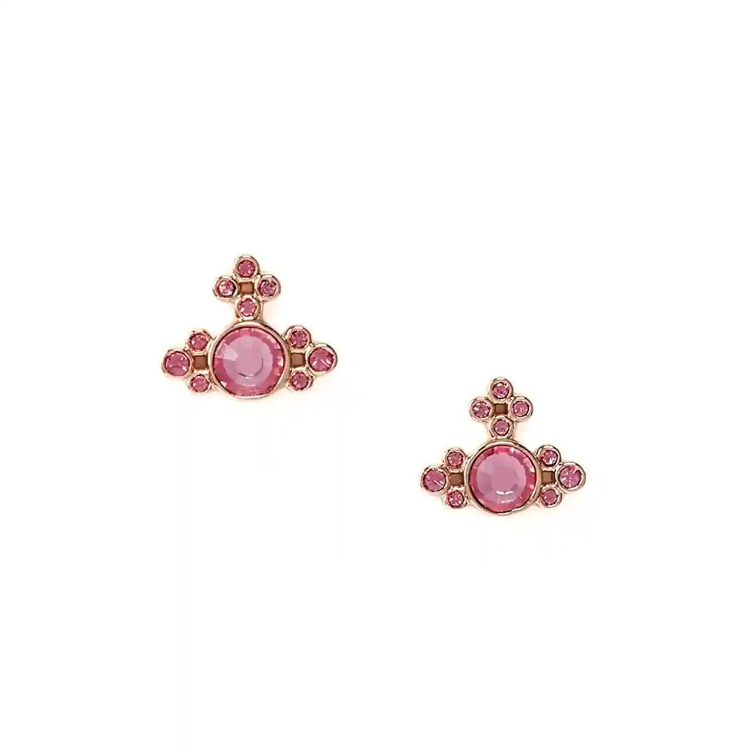 Beautifully constructed with small rose crystal spheres, merged to create the familiar Orb Silhouette, where a single rose crystal replaces the centre of the Orb to create the dainty pink gold-tone Brucella Earrings.