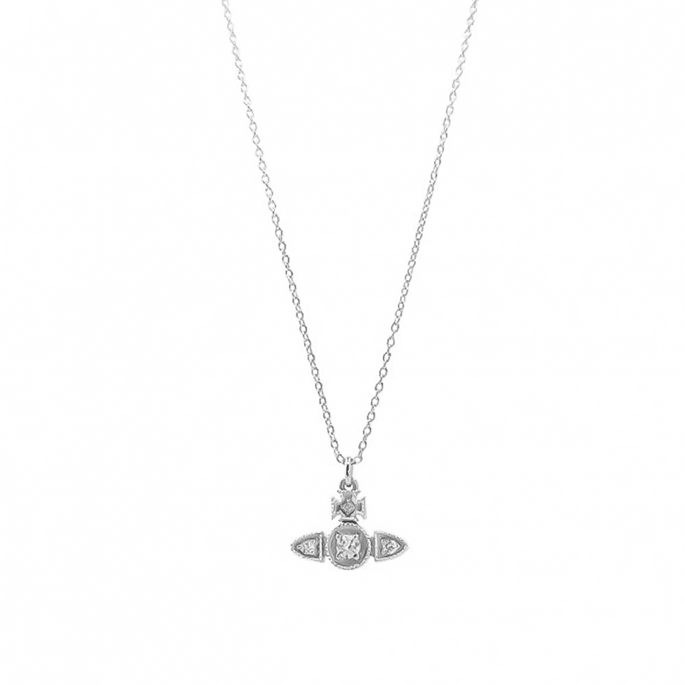 Dainty sparkling crystal set in the iconic Vivienne Westwood orb pendant. Available in silver or gold tones, it is perfect for layering or for a subtle sparkle added to your look. Hangs on an adjustable 44cm chain.