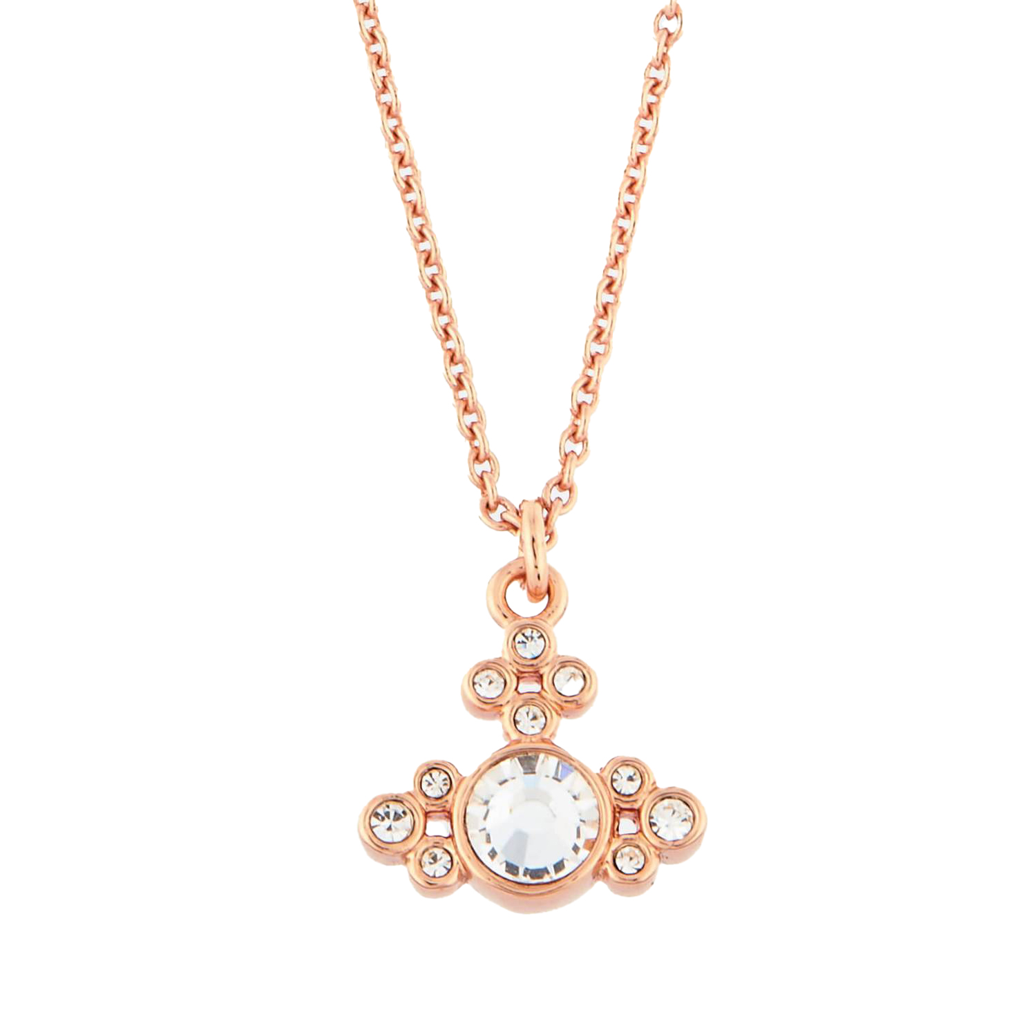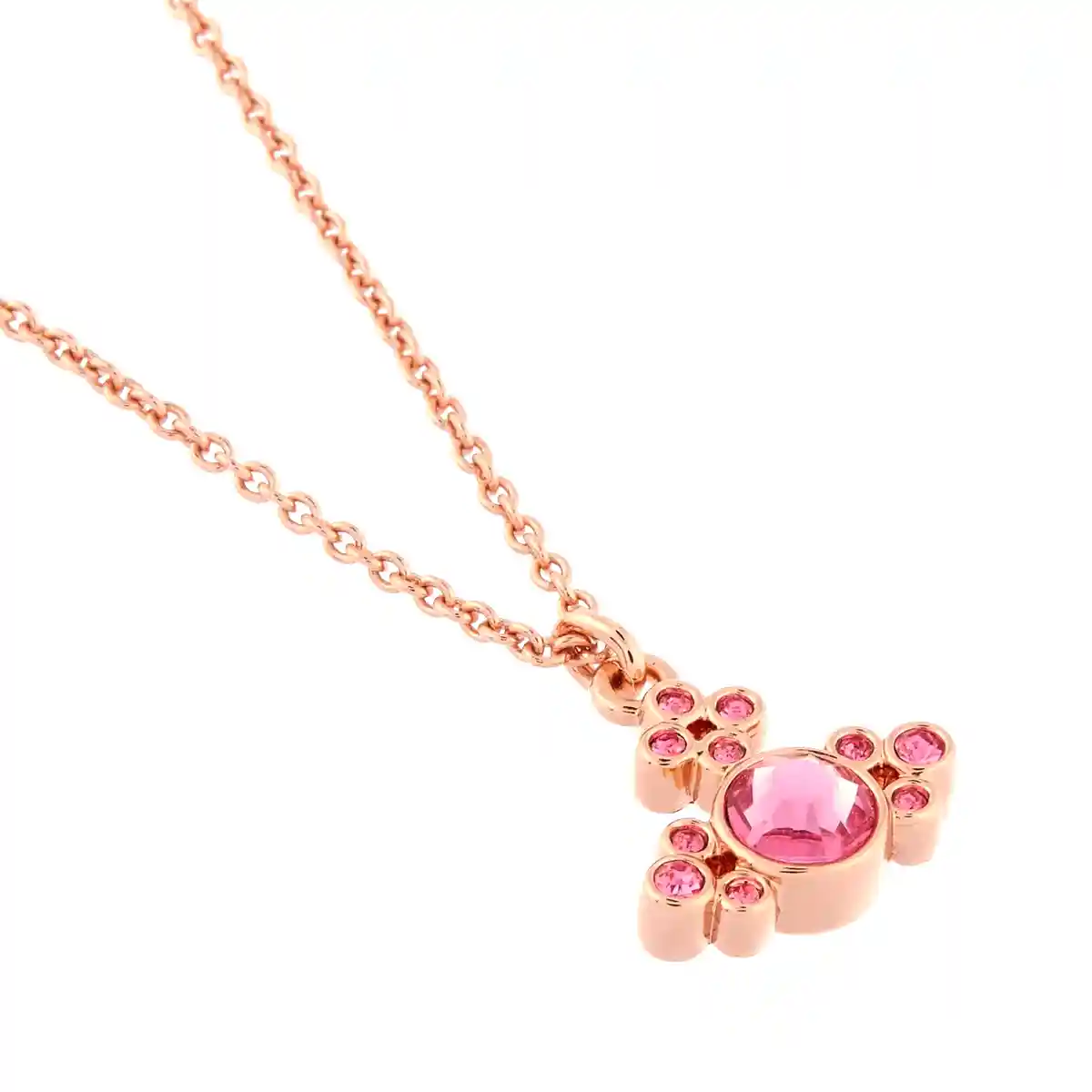 From the globally known brand Vivienne Westwood comes these Women’s Brucella Orb Pendant in Pink Gold Crystal Rose. Dangling on a brass rose gold chain, the iconic Vivienne Westwood Orb logo is styled in a minimalistic manner by multiple crystals. This necklace is also available in other colours, as seen in the attached pictures.